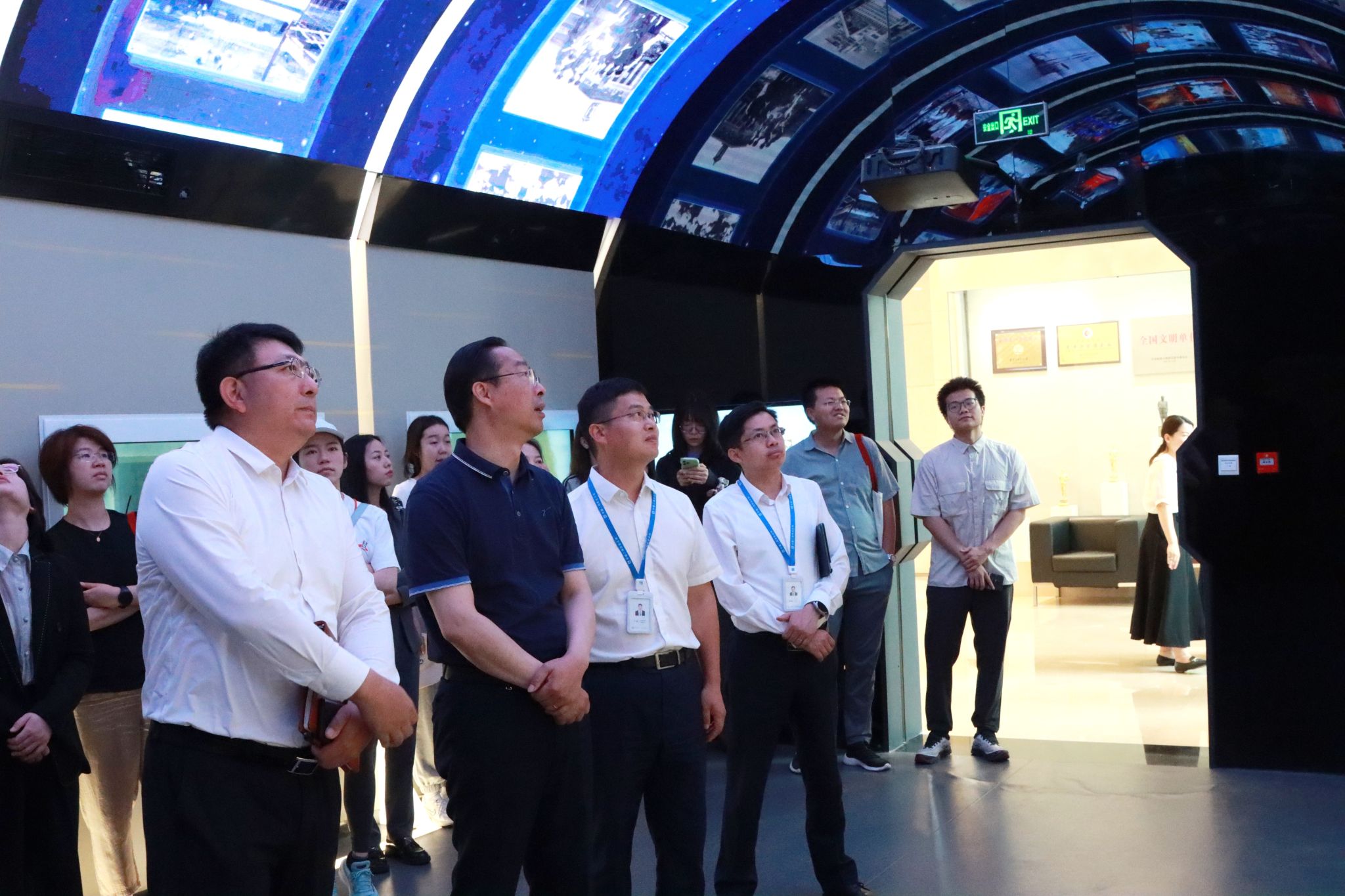 座谈会前,黄益方副校长一行参观中建二局超越文化展览馆、中版项目智慧展厅,深入施工现场,项目代表就项目整体概况、建筑物特点及施工亮点等方面作相关介绍。
