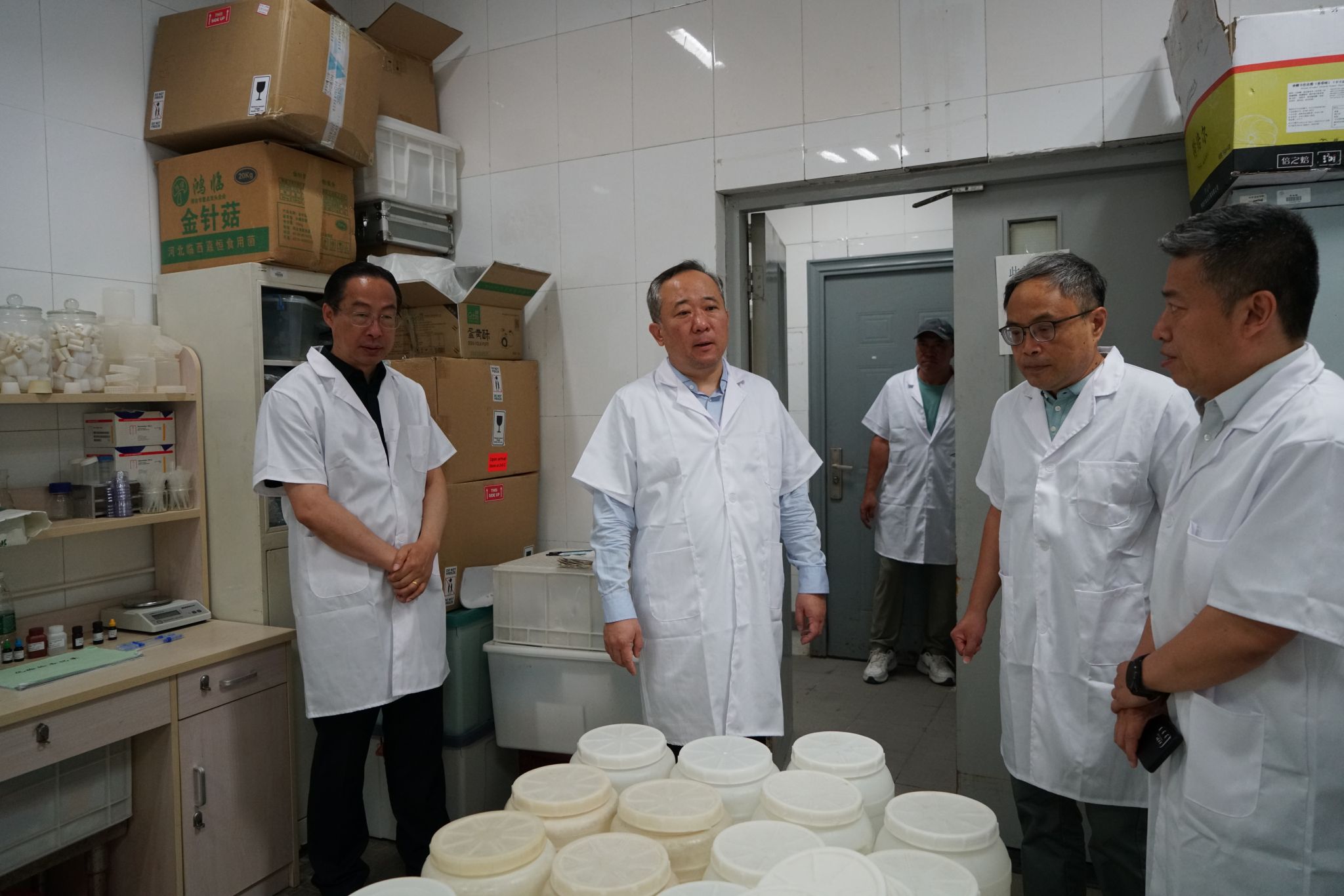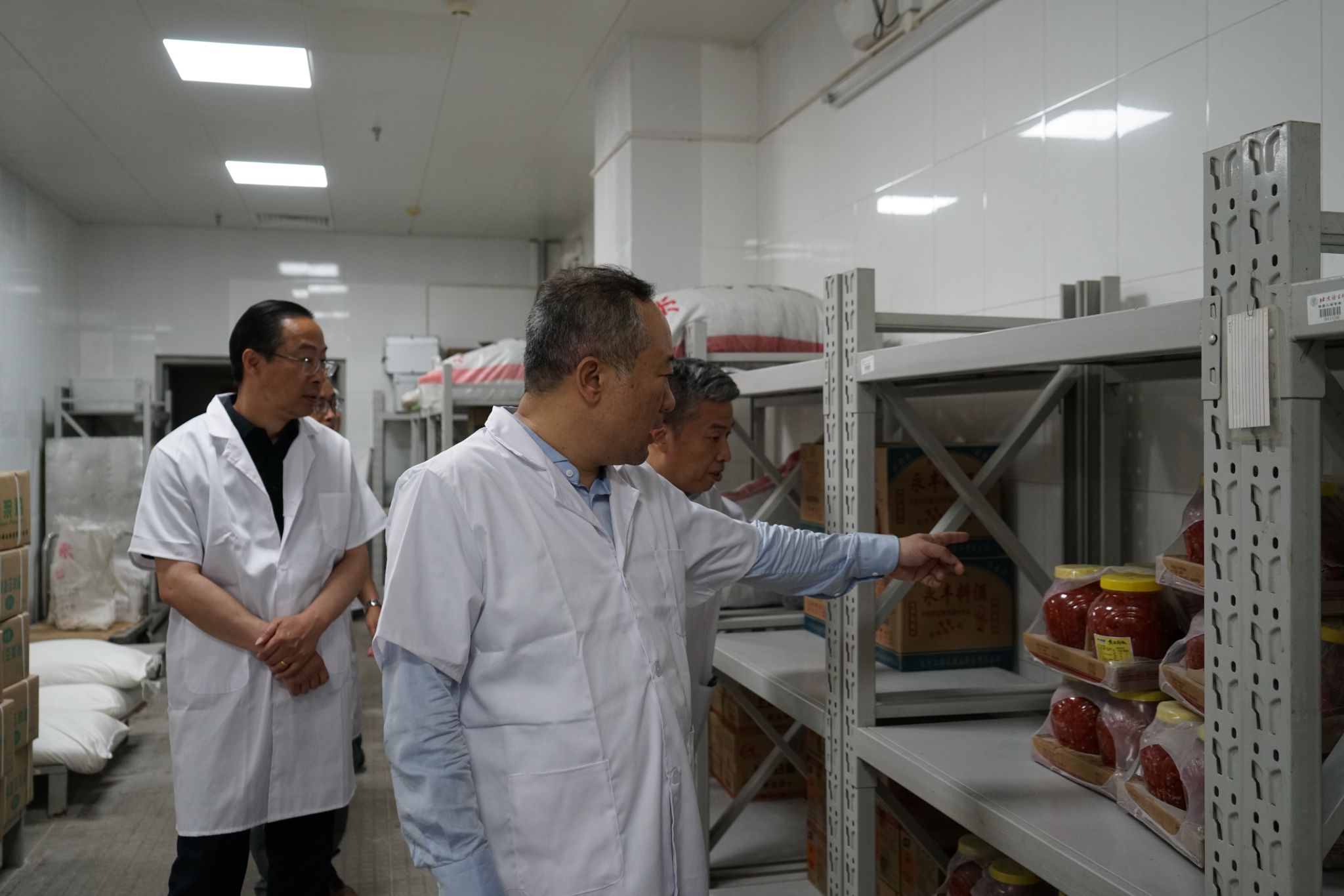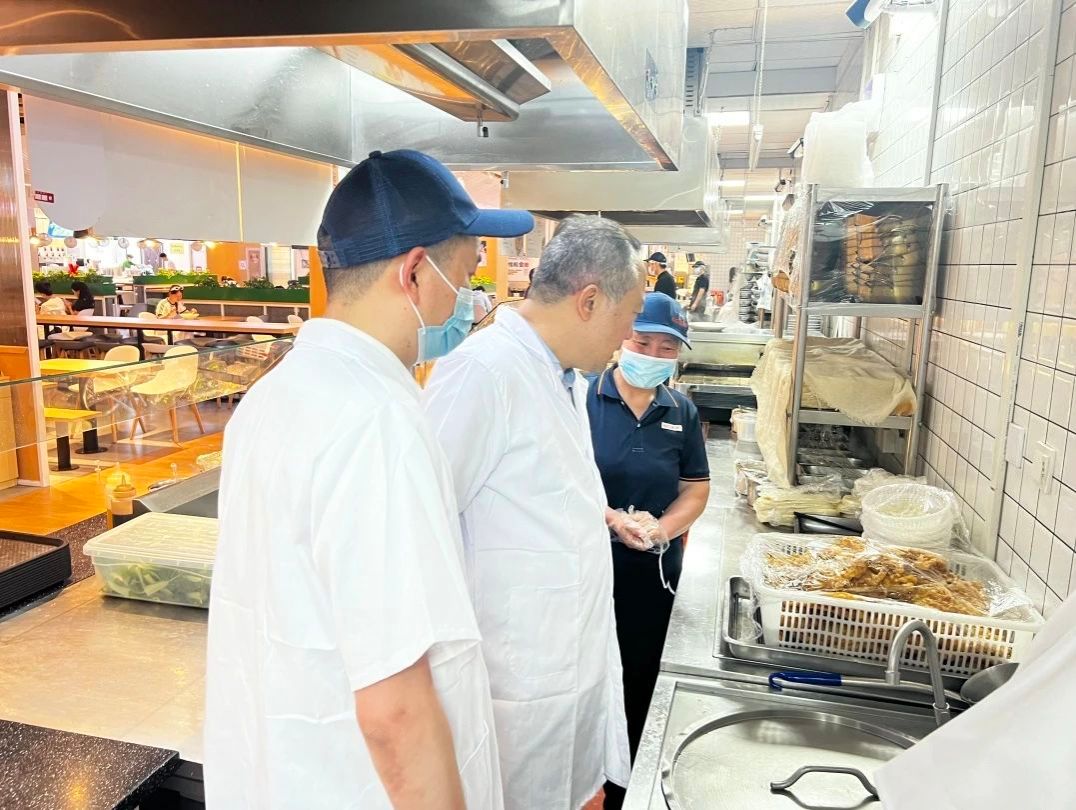段鹏校长一行首先走进清晏楼食堂后厨,依次检查了米饭加工间、主食加工间、切肉间、化验室和库房。然后又来到清晏楼三层快乐食间,对切菜间、选菜区以及留样间等进行了检查。检查过程中段鹏校长详细了解了食材来源,加工过程以及食品留样等情况。他强调“食品安全无小事”,要严把食品加工、售卖各个环节,严格操作规程,时刻把食品安全放在首位,为师生提供安全饮食、健康饮食,推陈出新,满足广大师生多样化的就餐需求。