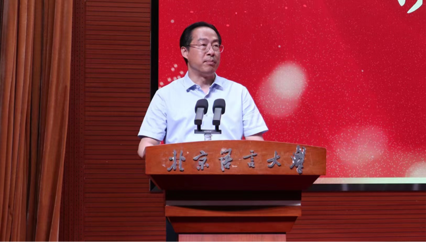 紧接着,黄益方副校长发表闭幕致辞。他首先向获奖同学表示祝贺,并总结了本届大赛与世界文化节的丰硕成果。他指出,此次世界文化节包括三大板块、九项活动,这一系列活动的顺利举办离不开全校全体师生的共同努力。黄益方校长提出殷切期许,希望广大青年在未来继续秉承“德行言语,敦睦天下”的校训,用多语种讲好中国故事,展现北语学子的精神面貌。