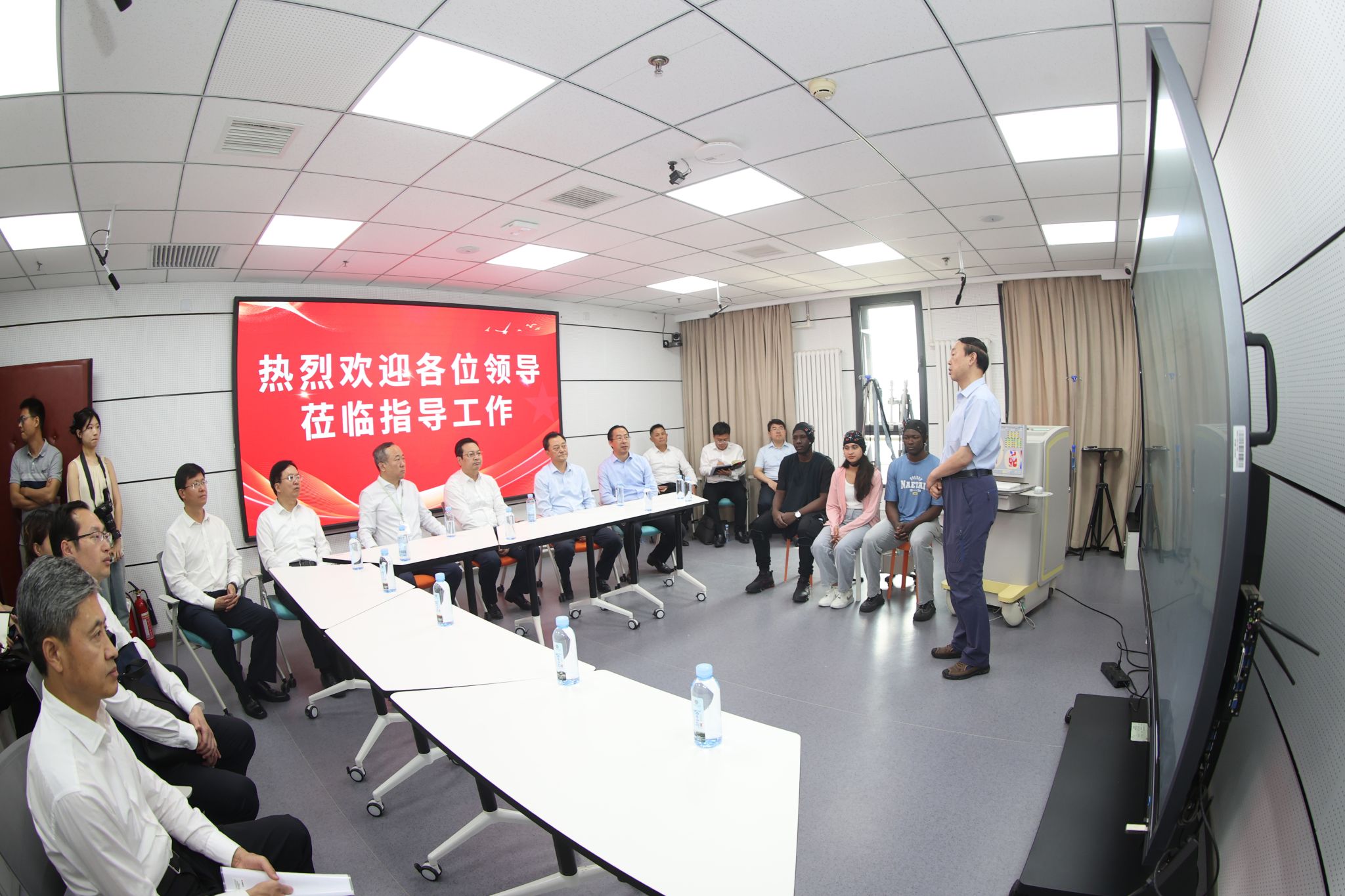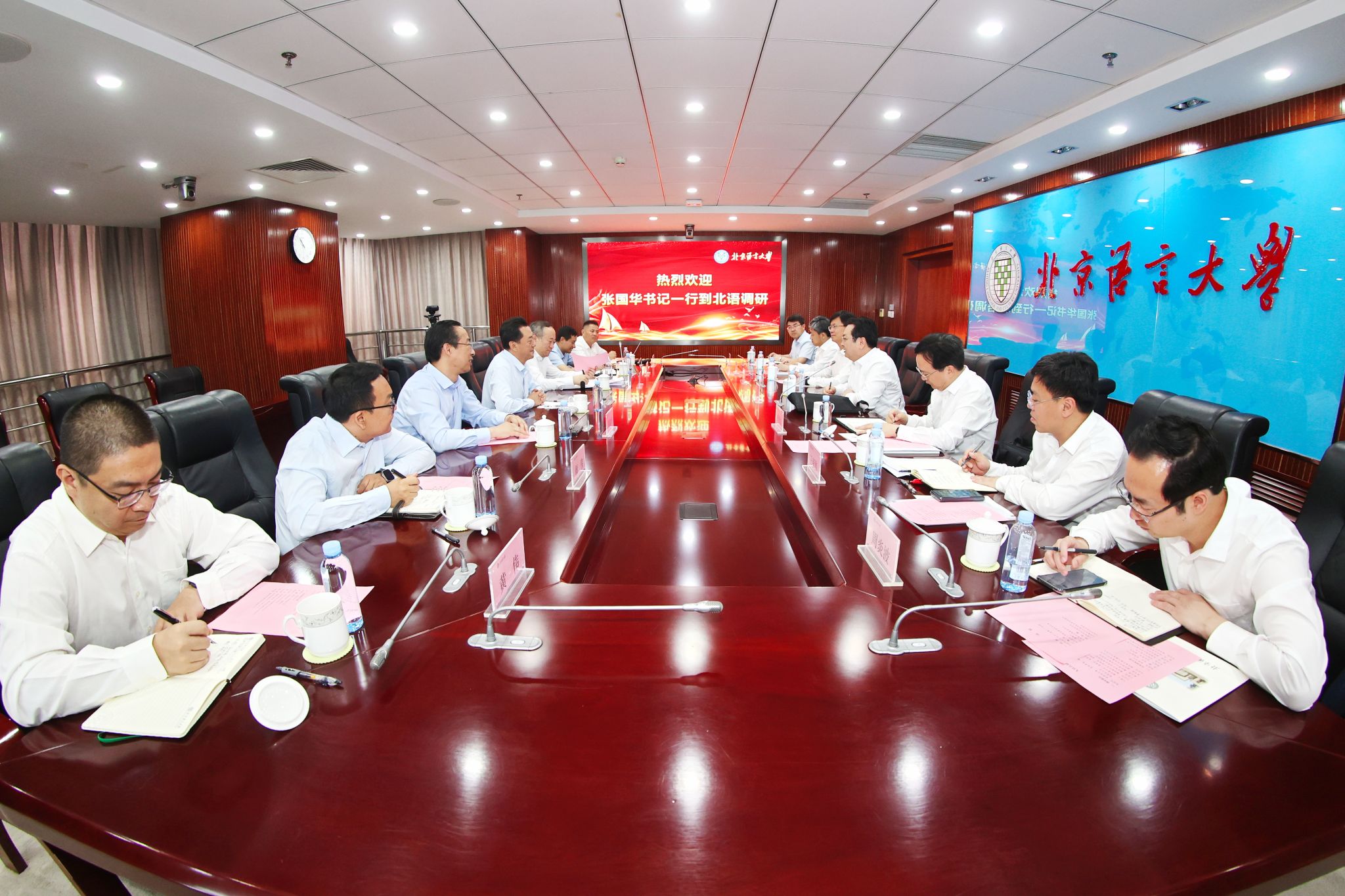 在深入北京语言大学语言障碍与脑科学MEG实验室、语言认知科学教育部重点实验室、校史馆调研了解情况后,张国华书记指出,到学校调研后加深了对学校的了解,北京语言大学目前有11个学科门类,已经由以语言教育和研究为优势的大学,发展成为在文学、理学、工学、教育学、艺术学、交叉学科、医学等学科交叉融合非常有成效的国际化大学,成为多学科协调发展的中国高等教育国际化办学实践高地。他对北语近年来的办学成就予以充分肯定,并对北语雄安校区未来建设充满期待。他指出,雄安校区作为学校发展的重要战略规划,希望学校认真按照国家发改委、教育部和雄安新区有关要求,高质量高标准做好雄安校区总体规划方案编制工作,结合未来发展需求深入研究学校功能布局,加强统筹协调,完善工作机制,积极发挥自身优势参与高校协同创新,用好各项支持政策推动重点学科创新发展,携手打造校地融合发展新典范,积极为新区发展贡献北语力量。