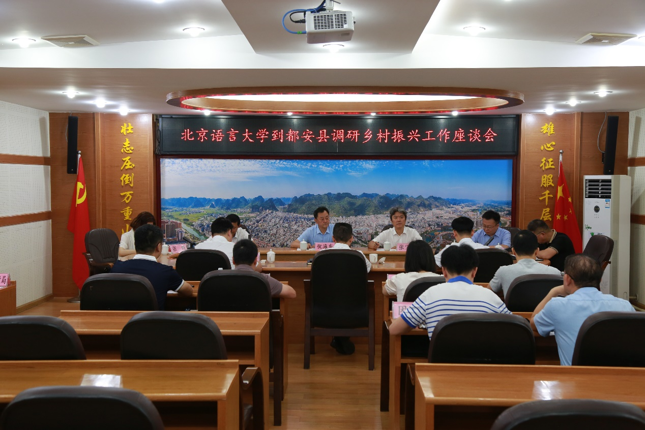 6月12日上午,倪海东书记、张宝钧副校长一行来到都安县政府,出席都安县乡村振兴工作座谈会。
