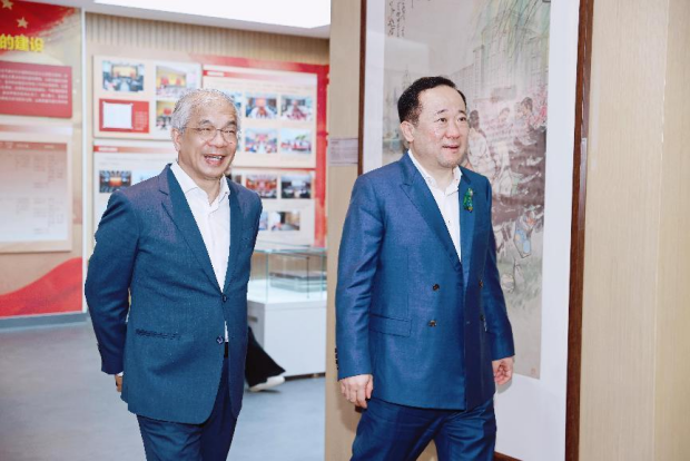 会后,段鹏校长陪同陈清河校长一行参观了校史馆,向他们介绍了学校创建及发展历史。