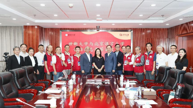 世新大学舍我纪念馆馆长周成荫表示,北语在国际汉学界发挥着核心作用,自己一直致力于汉学领域研究以及舍我纪念馆的建设工作,愿积极参与世新大学与北语的合作交流。世新大学副校长李功勤表示,愿与世新校友一道共同推进两岸友好交流。