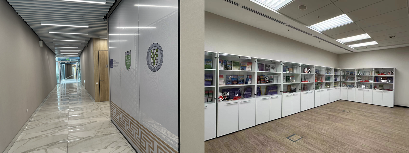 中国教育部部长怀进鹏、哈萨克斯坦科学和高等教育部部长努尔别克向两国元首报告后,北京语言大学校长段鹏和阿斯塔纳国际大学校长伊尔萨利耶夫共同为北京语言大学哈萨克斯坦分校揭牌。