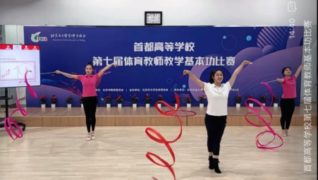 学校高度重视此项比赛,利用比赛平台扎实锤炼青年教师教学基本功。接到比赛通知,学校体育教学部立即成立教学指导团队,在多次研讨后,刘颖老师选择“艺术体操彩带组合动作”为自己参赛的题目。从主题导入、技术讲解、技能展示、原理分析、数据呈现、理论挖掘、师生互动、课程思政、PPT、逐字稿、时间把控等环节入手,刘颖老师与团队开启了艰苦与细致的打磨过程。历经1次线下体育部全体教师看课、7次PPT与逐字稿润色、9次线下打磨、1次苏英霞老师进行专家点评、1次适应场地,最终刘颖老师代表北京语言大学获得本次比赛的一等奖,为学校赢得了荣誉。