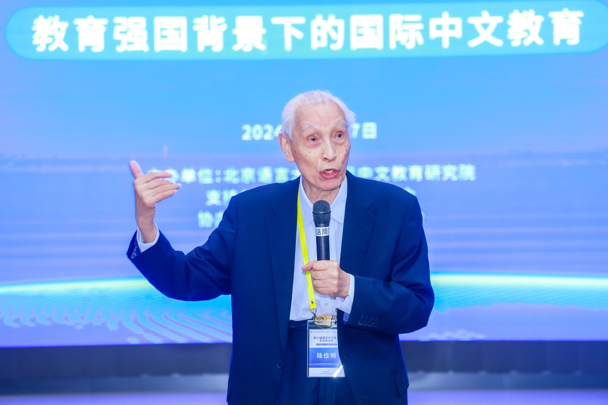 陆俭明教授在发言中指出,随着我国成为世界第二大经济实体,各国对高素质中文人才的需求越来越大,突出体现在经贸、高科技领域。我们既要培养高素质的中文教师、中文翻译及中文研究人员,也要培养懂中文、会中文的双语或多语人才,这为国际中文教育带来了极大的挑战和机遇。新形势下国际中文教育的学科建设问题需要从国际中文教育的使命来考虑,即为世界各国培养他们所需要的高素质中文人才。只有完成这一使命,我们的语言和文化才能真正走向世界。