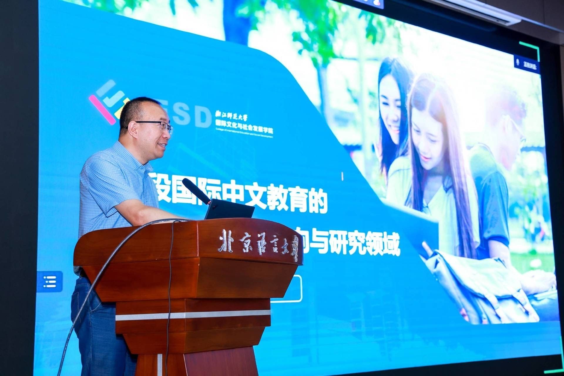 马箭飞教授在大会报告《国际中文教育在教育强国建设中的角色和作用》中指出,语盛是强国的重要标志,在打造世界重要教育中心的过程中,国际中文教育应发挥先导性基础作用;在学科建设和人才培养方面,国际中文教育应该以专博学位点建设为契机发挥引领示范作用;在建设高质量教育体系上,国际中文教育应发挥先行示范作用。马箭飞教授指出,语言文化国际传播是大国强国必争之地,国际中文教育是强国建设、民族复兴的重要内容和标志,是教育对外开放的主要目标,也是国际影响力的集中体现。在教育强国建设的背景下,国际中文教育要充分发挥自身作用,创新世界重要教育中心建设的核心理念、结构形态和实践逻辑。在国际中文教育人才培养方面,应在学科建设上率先改革,在人才培养上率先转向,在实践要求上率先突破。加快自主知识体系建设,把服务高质量发展作为建设教育强国的重要任务。