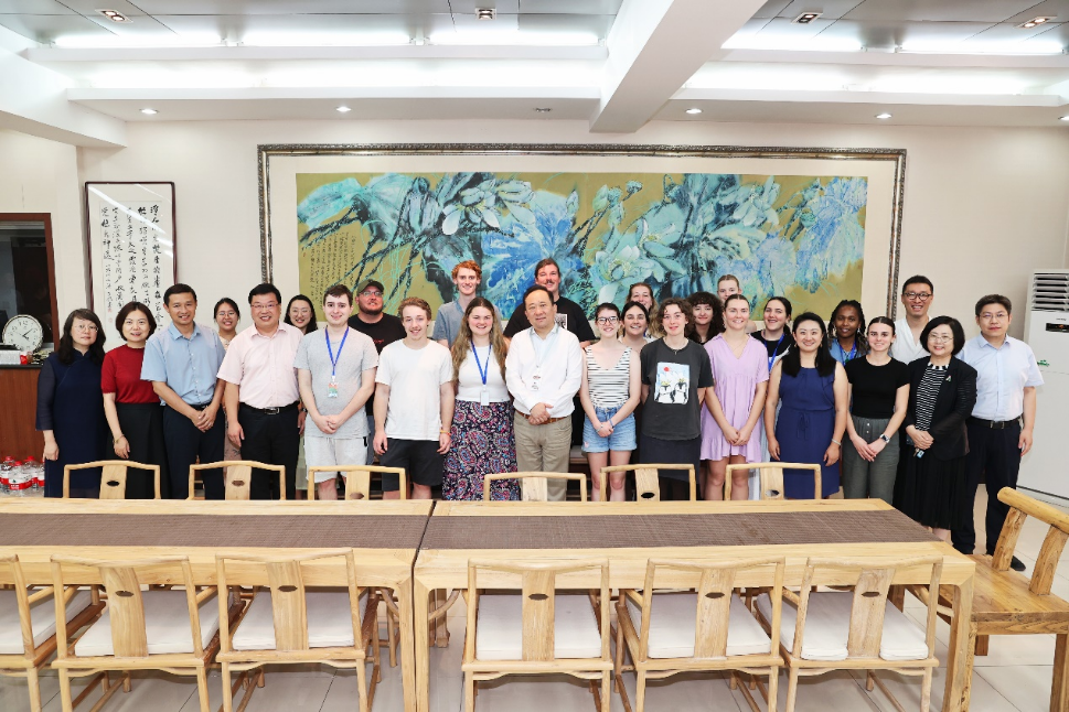 段鹏校长首先来到北语茶学堂,与正在上中国茶文化体验课的澳大利亚纽卡斯尔大学的师生们交流。在澳大利亚政府“新科伦坡计划”奖学金的资助下,纽大学生首次来北语学习,对应用中文学院为其精心安排的汉语课程、文化体验和企业参访等活动表示非常满意。段鹏校长勉励大家学好汉语,深入了解中国文化,为中澳合作交流做出贡献,并与纽大师生们合影留念。