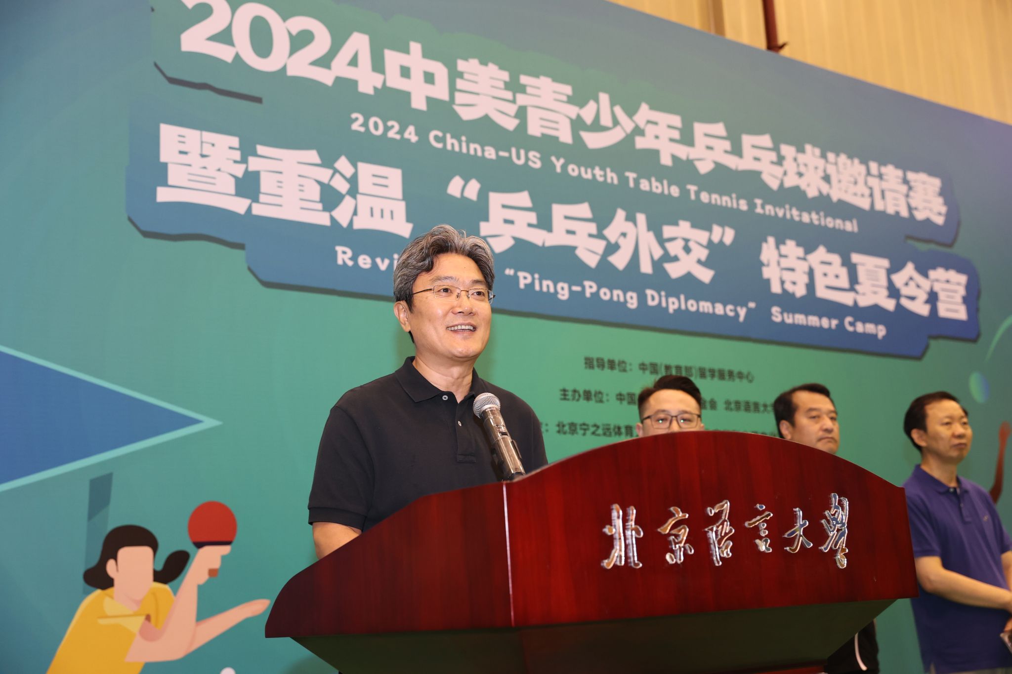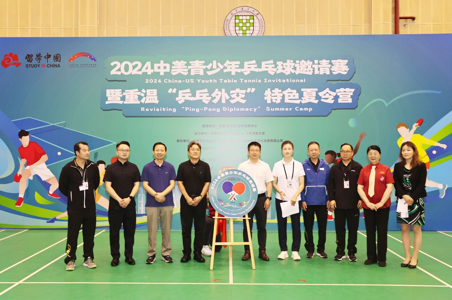 7月13日,2024中美青少年乒乓球邀请赛暨重温“乒乓外交”夏令营开幕式在北京语言大学逸夫体育馆隆重举行。