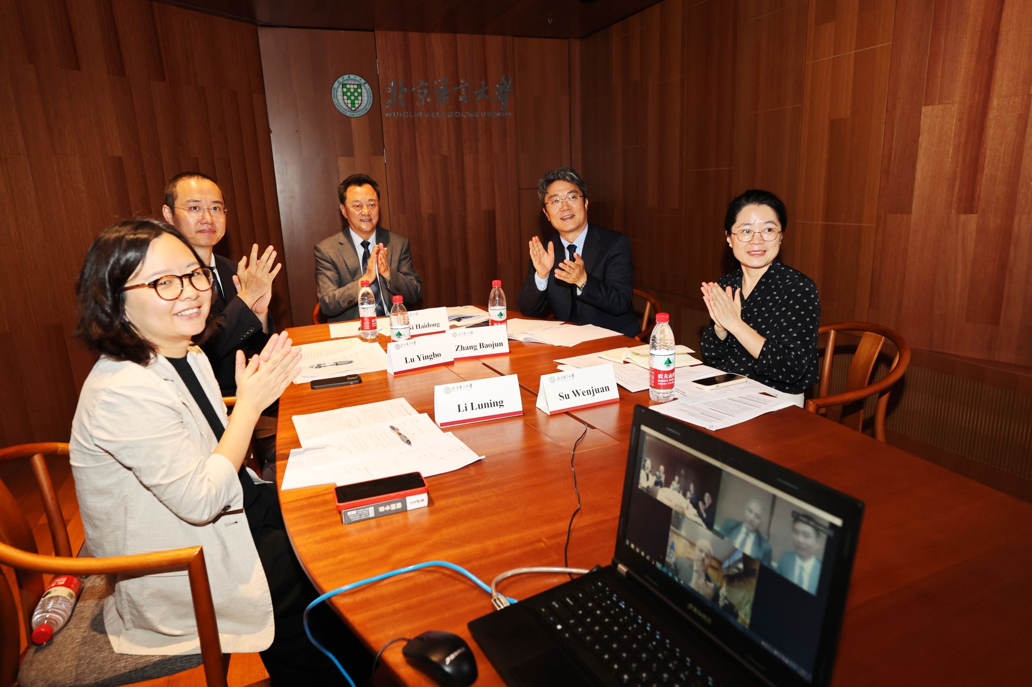 7月16日下午,埃及苏伊士运河大学孔子学院2023年度理事会以视频会议的方式顺利召开。北京语言大学党委书记倪海东、副校长张宝钧、孔子学院工作处副处长苏文娟、孔子学院代理中方院长张廷洪,苏伊士运河大学校长纳赛尔·曼杜尔、孔子学院埃方院长哈桑·拉加布等理事会成员及双方相关部门负责人出席会议,会议由张宝钧副校长主持。