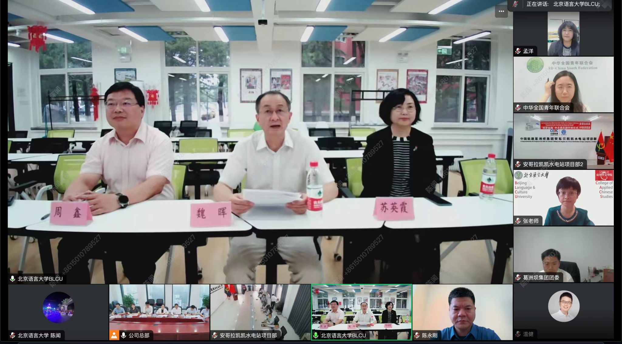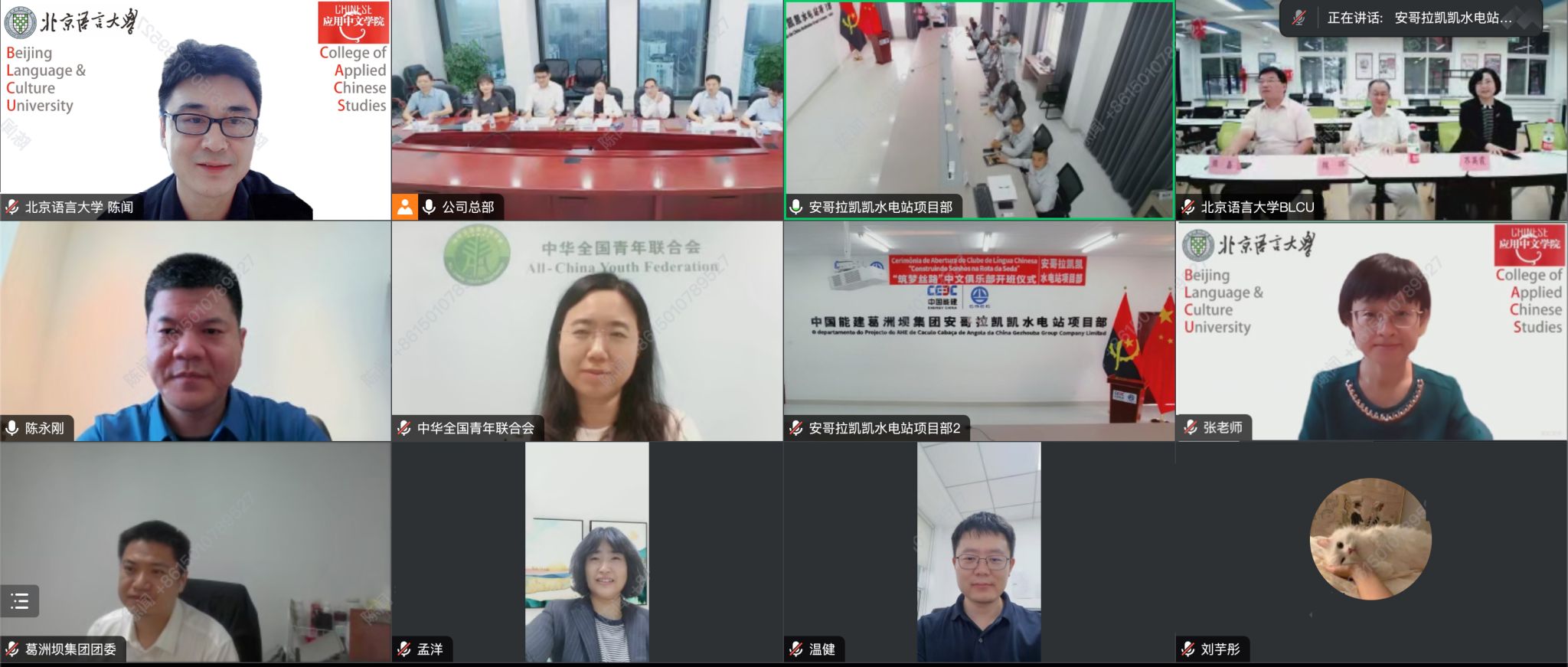 7月30日,北京语言大学应用中文学院与中国能源建设集团合作的“筑梦丝路”中文俱乐部举行线上开班仪式,我校党委副书记魏晖应邀出席仪式并讲话。全国青联副秘书长刘凯,中国能建集团相关领导,中国能建安哥拉凯凯水电站项目中文俱乐部学员,以及应用中文学院院长苏英霞、院党委书记周鑫、职业教育系主任陈闻等共同参加了开班仪式。