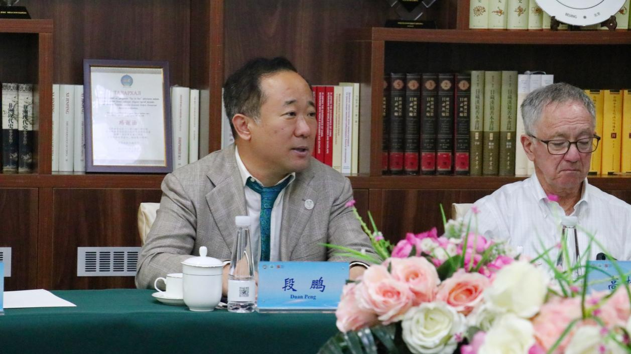 北京语言大学校长段鹏与美国南卡罗莱纳州堡垒学院历史系教授南恺时(Keith Knapp)共同为世界汉学中国古典学研究中心揭牌。