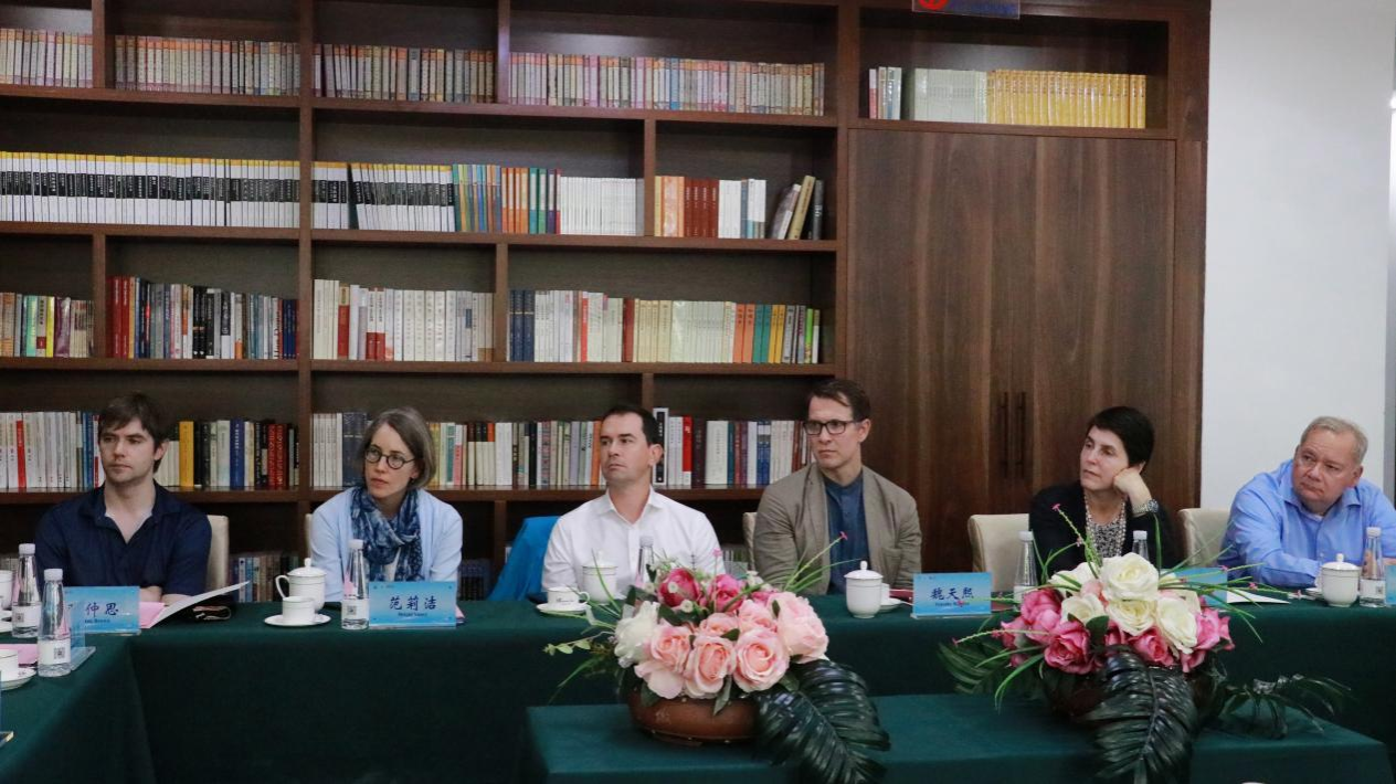 北京语言大学校长段鹏,汉学与中国学学院党委书记马铁石,一带一路研究院副院长范军出席座谈会,会议由世界汉学中心主任、一带一路研究院院长、汉学与中国学学院院长徐宝锋主持。