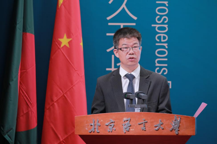北京语言大学副校长张宝钧在致辞中指出,学校十分重视项目的实施,在中孟各方的共同努力下,项目取得了圆满成功,并获得了各方的高度肯定。北京语言大学是一所国际性大学,建校60多年来,培养了哈萨克斯坦总统托卡耶夫,非洲埃塞俄比亚前总统穆拉图等80多位外国的政要,300多位外国使节,包括孟加拉达卡大学中文系主任阿福萨也是北语的毕业生。目前北语为全世界培养的国际学生超过30余万名,承担了23所孔子学院中文课堂,在泰国曼谷、日本东京、哈萨克斯坦的阿斯塔纳建设了三所分校,每年大学都要外派将近百名教师到海外去任教。中国和孟加拉国是相知相交的友好近邻,树立了国与国之间尤其是“全球南方”国家间友好交往、互利合作的典范。明年是中孟建交50周年,我们希望以此项目为契机,与中孟各界一起,推进以下方面工作:一是加强复合型中文人才培养。适应中孟建设发展需要,推动构建官方引领、高校合作、社会支持等多方协同合作机制平台,着力培养专业、“中文+职业”、汉学家等多层次人才;二是加强教育的互联互通。推动对彼此语言的学习,深化中孟教育机构间的学生交流、人才联合培养、本土中文师资培训培养、科研合作与学术交流等教育合作;三是深化中孟青年人文交流。推动孟加拉国外交干部来华研修项目的机制化与常态化,推动更多富有影响力的、覆盖更多领域的中孟语言、文化、教育、人文交流等各领域青年交流品牌项目开展,厚植两国青年友谊,为中孟两国国相交、民相亲、心相通做出更大贡献。