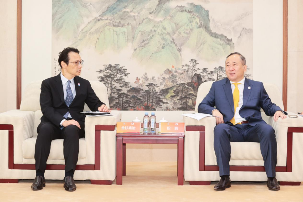 随后,段鹏校长和金杉宪治大使一行在综合楼906会议室进行座谈交流。段鹏校长首先向金杉宪治大使一行的到来表示热烈欢迎。他表示,北京语言大学自 1962 年建校伊始就是中国教育部直属重点大学,是一所以国际中文教育和中外人文交流为己任的特色鲜明、多学科协调发展的国际型大学,与全球81个国家和地区的428所高校及教育机构建立了紧密的交流合作关系。目前,学校与日本58所高校及教育机构建立了合作交流关系,除学生交流外,每年还派遣多名教师赴日本教授中文。2015年,学校在日本东京成立了“北京语言大学东京学院”,培养了500余名可以获得北京语言大学文凭的日本本科及硕士生。此外,北京语言大学的日语专业是国家一流本科专业,日语口译、日语笔译是北京语言大学翻译专业硕士(MTI)专业之一,在教育部首轮专业学位水平评估中,北京语言大学MTI名列前茅。北京语言大学出版社与日本大阪大学、早稻田大学等多所知名高校学者合作出版了《对日汉语教学法》《日本现代汉语语法研究论文选》等多本权威教材,得到了中日学生的广泛认可。未来,北京语言大学将继续秉持开放包容的办学理念,发挥办学优势,继续深化与日本的文化交流与合作,共同培养具有国际竞争力的高素质人才,为促进中日两国关系的和平、稳定与发展贡献智慧和力量。