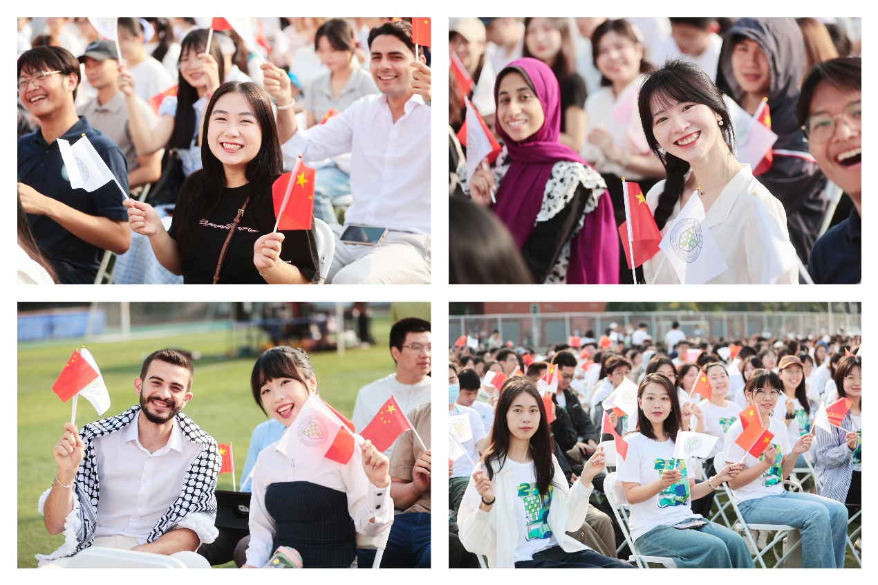9月19日上午,伴随中外学生演唱的歌曲《麦芒》以及海外各分校和孔子学院发来的祝福视频,来自祖国和世界各地的2024级新同学相聚在“小联合国”的风雨操场,共同迎来开学典礼。