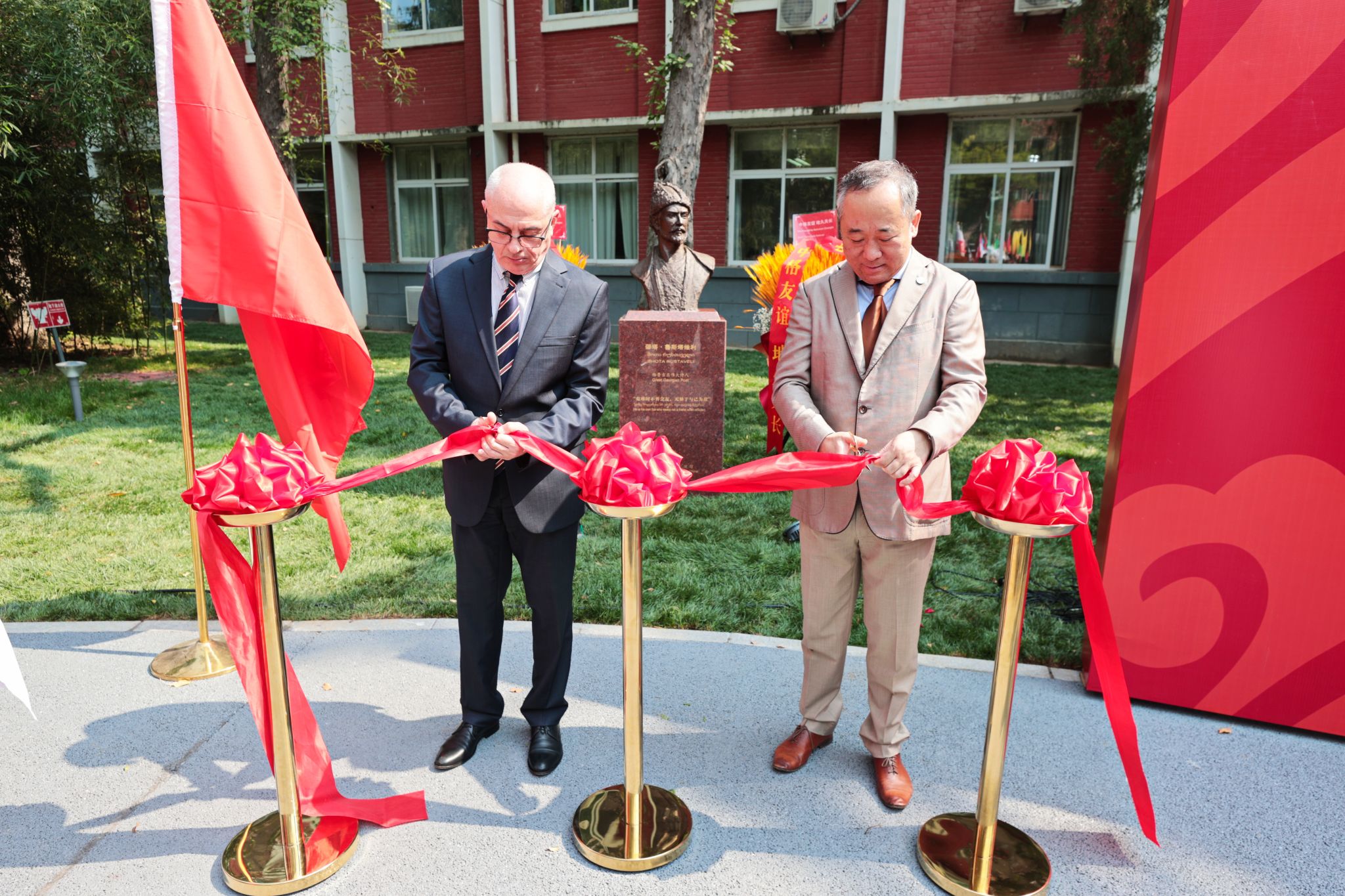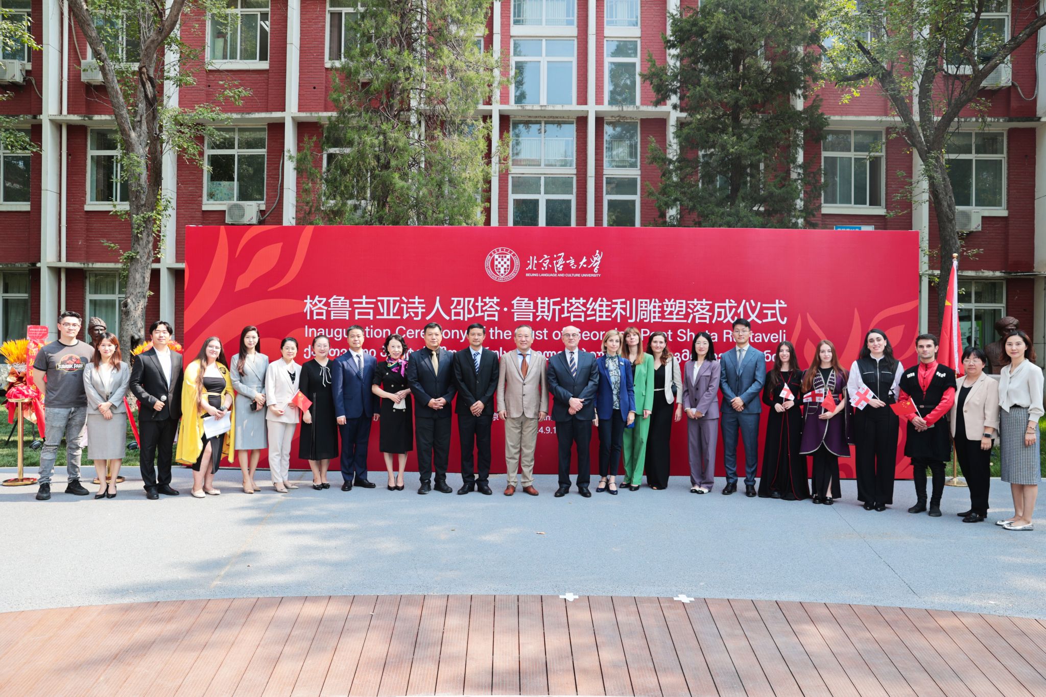 9月19日,格鲁吉亚驻华大使馆全权大使巴阿达·卡岚达泽一行到访北京语言大学,再续中格人文交流新篇章。大使一行与北语中格师生欢聚在文明互鉴广场,举办格鲁吉亚诗人邵塔·鲁斯塔维利雕塑落成仪式,见证中格友谊的升华。格鲁吉亚驻华大使馆参赞媞娜婷、一等秘书娜塔莉·科瓦察泽、大使助理桃漫·克利维泽、王虹欣,使馆特邀嘉宾北京外国语大学亚洲学院格鲁吉亚语教研室主任袁博陪同来访。北京语言大学校长段鹏、学校办公室主任李志坚、党委宣传部常务副部长黄展、国际学生处处长马小垒、研究生院副院长吴毅、国际合作与交流处副处长申英焕、国际中文教育实践与研究基地(北京语言大学)首席专家陈丽霞、北京语言大学格鲁吉亚学生代表出席仪式。中央电视台、中国报道、中国教育电视台、新华网等多家媒体进行了现场采访和报道。