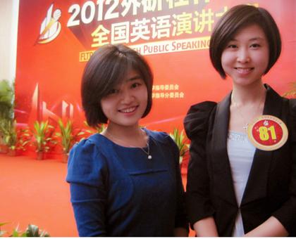 12月8日,随着决赛第四阶段的结束,2012外研杯英语演讲大赛在北外圆满落下了帷幕。 我校选手刘姝然以其稳重优雅的台风,完美清晰的英语表达,力克其它5位闯入总决赛的选手,夺得最后的全国总冠军。 这是我校第一次闯入外研社杯全国英语演讲大赛的总决赛,并最后夺冠!祝贺刘姝然同学取得这样优异的成绩!这份优异的答卷后面是姝然同学的勇气和坚持,指导教师英语教育中心刘瑛等的辛勤付出和来自我校师生的共同支持。