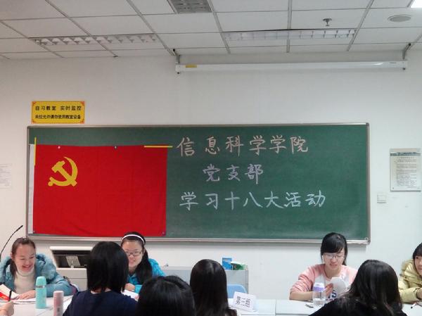 2012年12月6日晚,信息科学学院团总支学生会在主楼开展了“学习十八大”的活动,入党积极分子以及预备党员等参加此次活动。