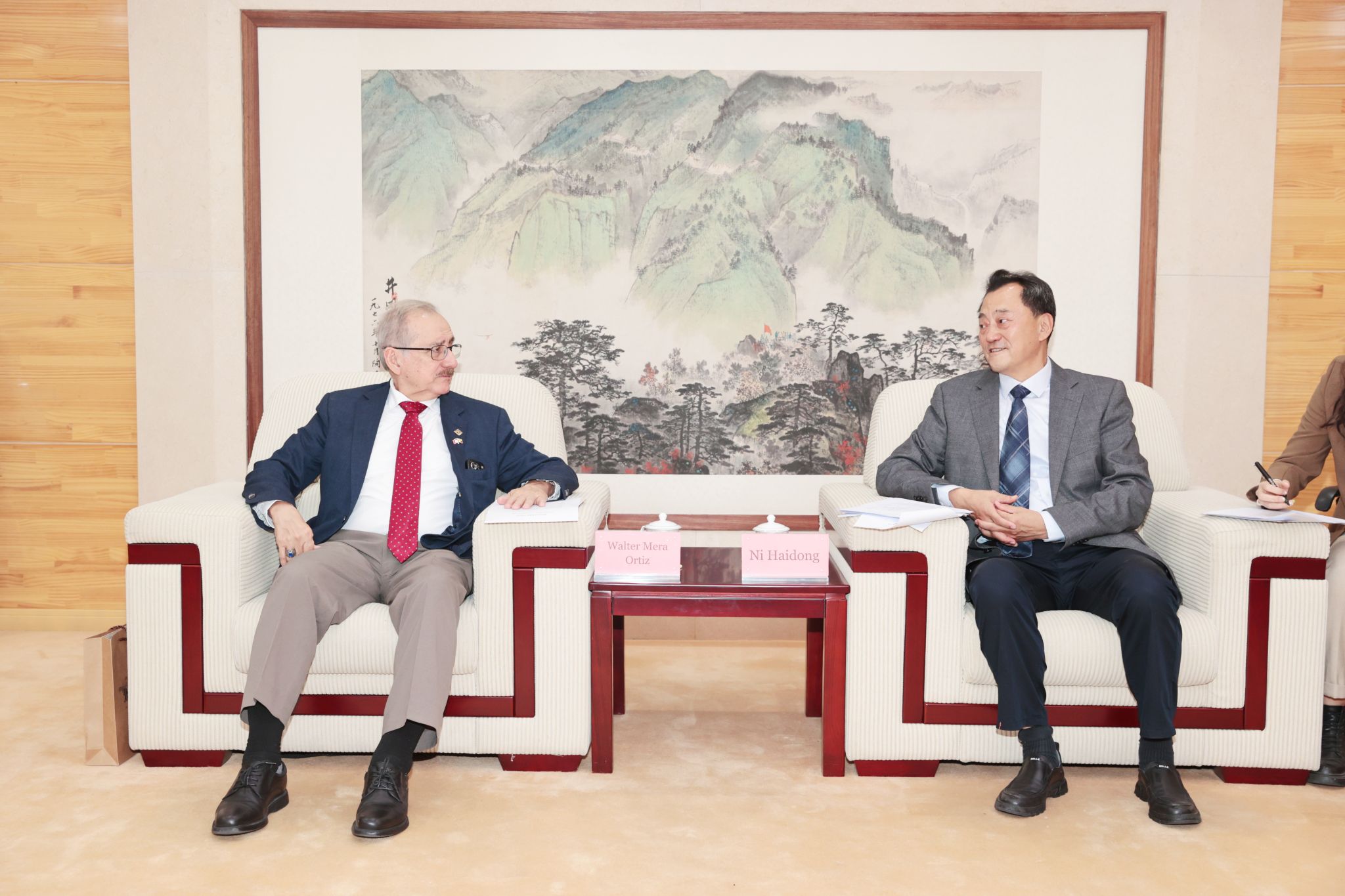 2024年10月14日,倪海东书记会见了瓜亚基尔圣地亚哥天主教大学校长沃尔特·梅拉·奥尔蒂斯一行。