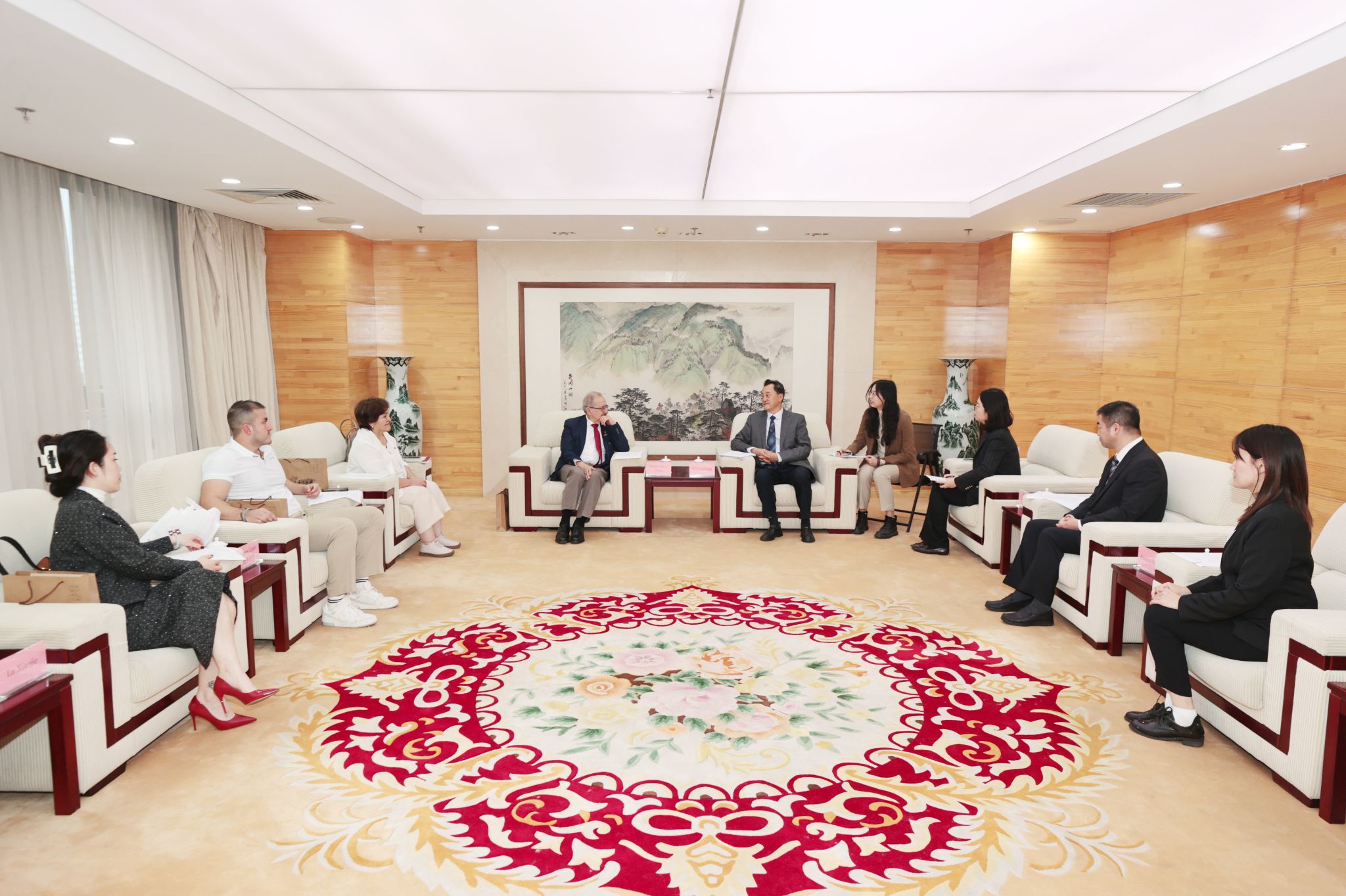 倪海东书记对代表团的到访表示热烈欢迎,并详细介绍了北京语言大学的悠久办学历史、学科优势及国际化合作的最新进展。他指出,自1962年建校以来,北京语言大学始终致力于引领国际化教育的发展潮流,尤其在全球范围内吸引优秀留学生来华深造、培养具备跨文化沟通能力的国际人才、以及推动汉语言文化在世界各地的传播和影响力提升方面,取得了令人瞩目的成就,成为全球语言教育领域的重要枢纽。今年上半年,双方已成功签署合作备忘录,当前正在积极推进多项具体合作项目的落地实施。倪书记表示,未来两校将继续深化合作,拓展合作领域,推动在学术研究、人才培养、文化交流等多方面实现更高水平的协同发展。