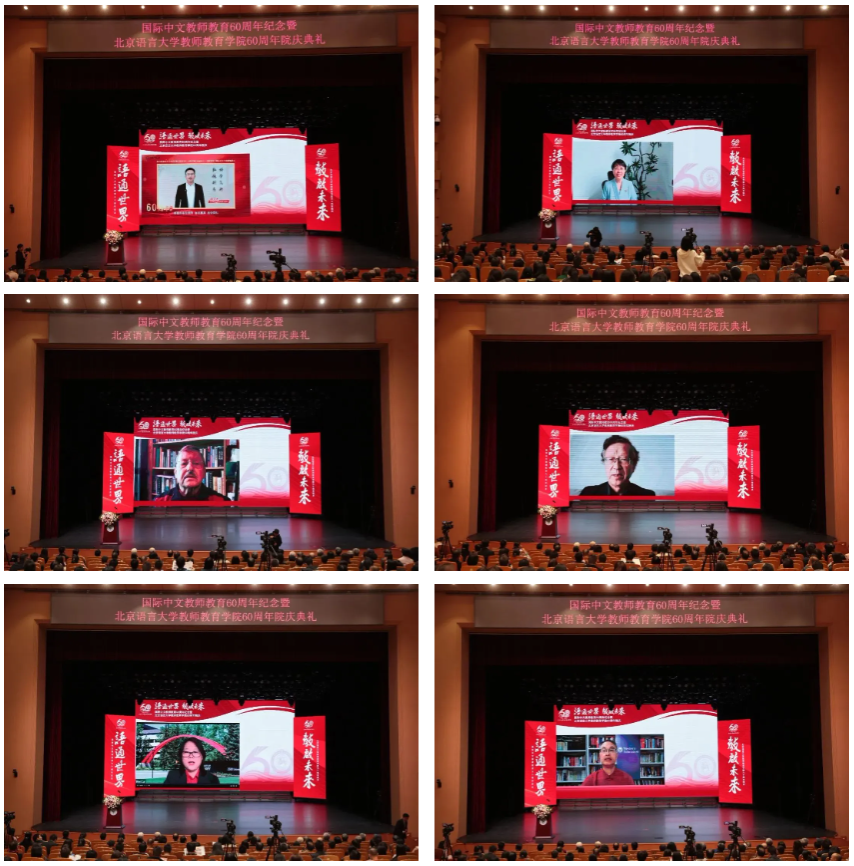 北京市人大常委会教育科技文化卫生办公室主任、原首都师范大学党委书记孟繁华,北京语言大学校长段鹏,原教育部中外语言交流合作中心党委副书记、世界汉语教学学会秘书长宋永波,中国侨联文化交流部副部长车壮丽,北京语言大学党委副书记魏晖,北京景山教育集团党委书记、总校长李志伟,北京语言大学党委常委、统战部部长吕静出席了庆典大会。北京大学中文系教授陆俭明、北京语言大学教授刘珣、北京大学对外汉语教育学院院长赵杨等国际中文教育领域著名专家,为北京语言大学国际中文教师教育事业奠基的老专家,以及学校各部门、各单位的领导和专家学者、中外师生代表、校友代表等出席大会。国内兄弟院校的领导和专家、广大海内外校友、社会各界人士等5千多人通过线上形式参加了大会。北京语言大学教师教育学院院长施家炜在会上致辞,学院党委书记王孝强主持了大会。