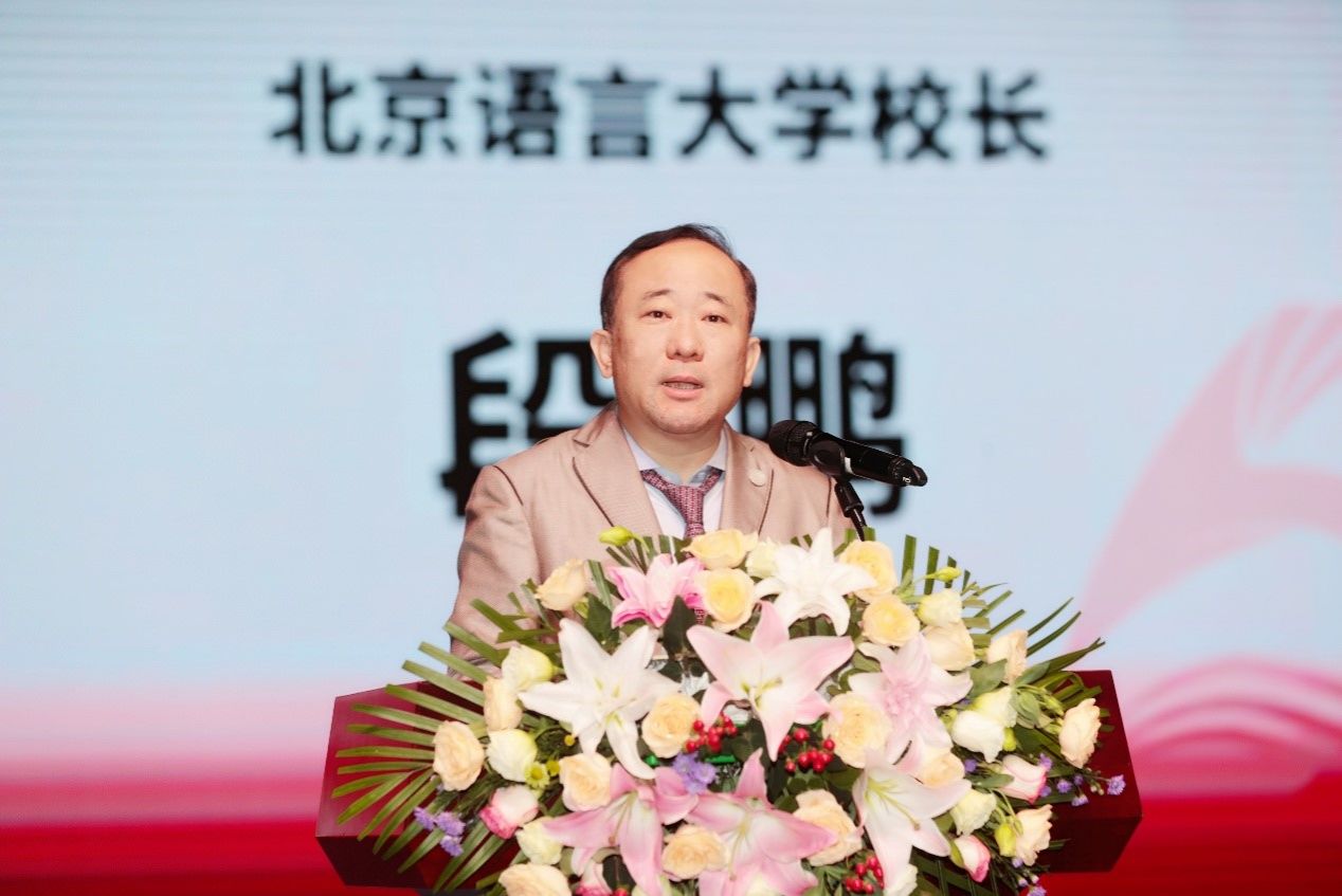 段鹏校长在庆典大会上发表讲话。他代表学校向国际中文教师教育事业60周年和教师教育学院建院60周年表示祝贺,向长期以来关心支持学院发展的各级领导和海内外校友表示衷心感谢。他指出,教师教育学院60年砥砺奋进的历程,就是北京语言大学传承红色基因、服务国家重大战略的缩影,也是北京语言大学历代全体师生自强不息、实干笃行的缩影。今天的教师教育学院坚持与国家战略同向同行,与时代脉搏同频共振,在人才培养、学科建设、教学科研等方面取得了突出成就,走出了一条特色创新发展之路。他对教师教育学院未来的发展提出四点希望:一是坚持把政治建设摆在首位,以高质量党建引领国际中文教师教育事业高质量发展;二是全面落实立德树人根本任务,着力培养堪当民族复兴大任的卓越国际中文教师、中外融通之才;三是坚持以教育家精神铸魂强师,着力建设高水平国际中文教师教育队伍;四是坚持创新求变,着力塑造国际中文教师教育高质量发展新动能。段鹏校长强调,学院要以更加坚定的信念和更加饱满的精神,以60周年院庆为契机,深入贯彻落实学校第十次党代会精神,以更强的责任感和使命感擦亮北语“金字招牌”,实现国际中文教师教育高质量发展的新跃升,为教育强国建设作出更大贡献。