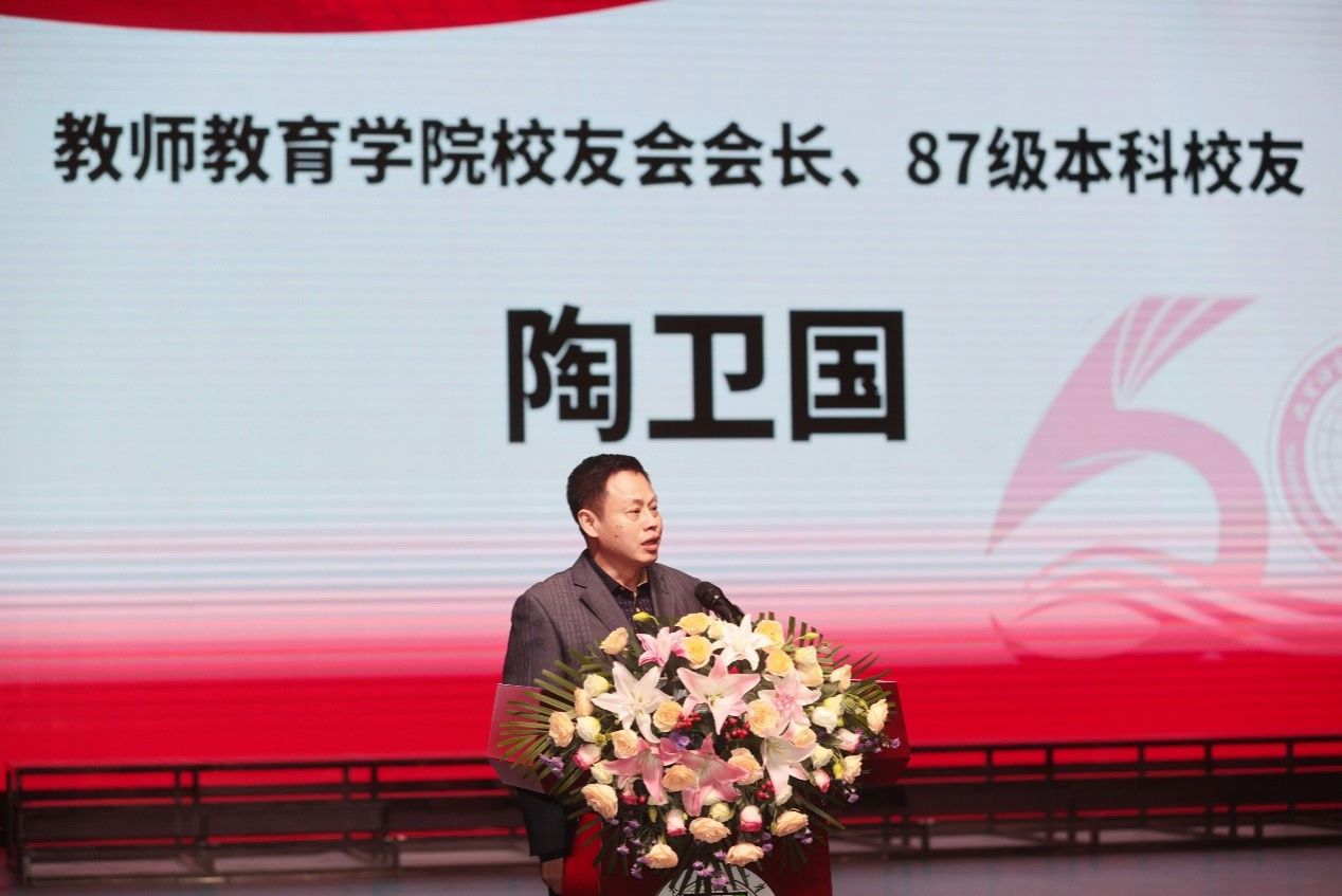 教师教育学院校友代表通过线上和线下方式向母院表达了祝福。团中央国际联络部部长、91级本科校友董霞寄来了贺信。美国加州大学戴维斯分校教授、教师教育学院校友会名誉会长、86级硕士校友储诚志,中国驻津巴布韦共和国特命全权大使、87级本科校友周鼎,教师教育学院校友会会长、87级本科校友陶卫国,越南胡志明师范大学教授、95级校友阮福禄,美国中文教师学会会长、哥伦比亚大学东亚系高级讲师、98级本科校友史中琦等全球各地校友在线上线下深情致贺,感谢母院的精心培养,并期待学院继续发挥在国际中文教育领域的导向和标杆作用,在新一轮发展的起点上勇担行业排头兵。学院2022级汉语言文字学专业博士生毛奕清代表在校生献词。