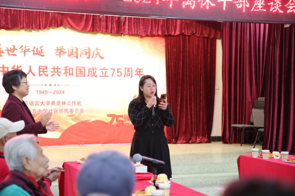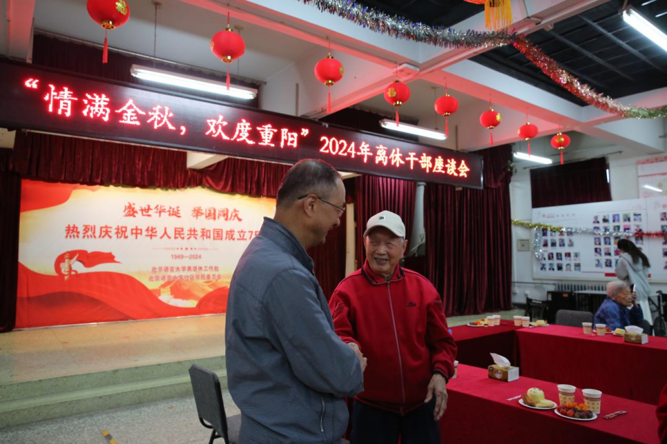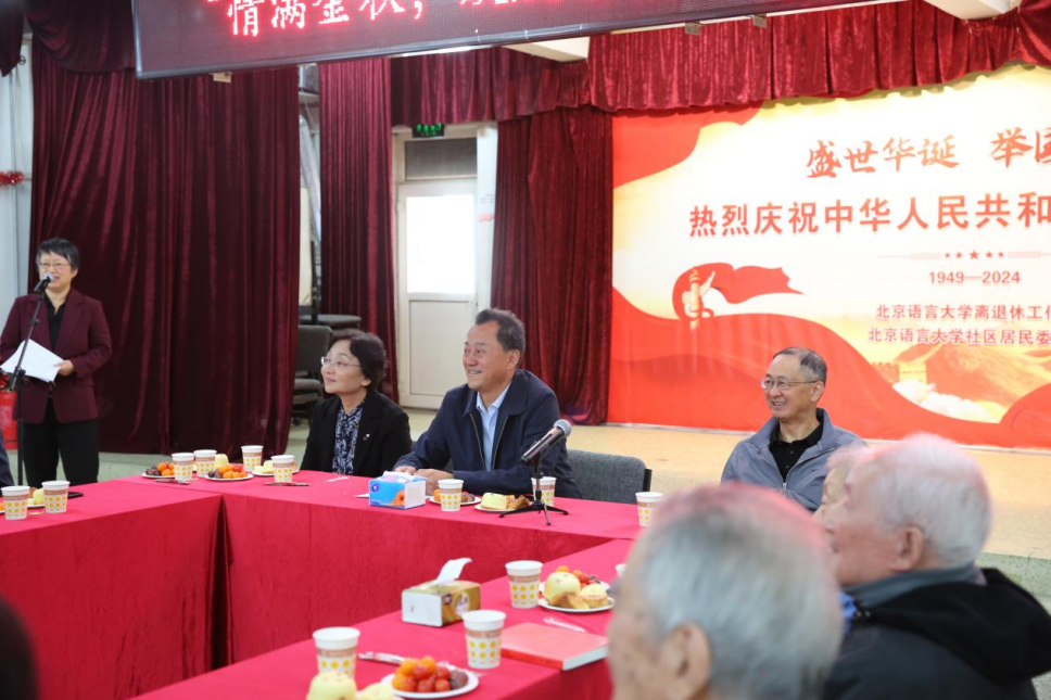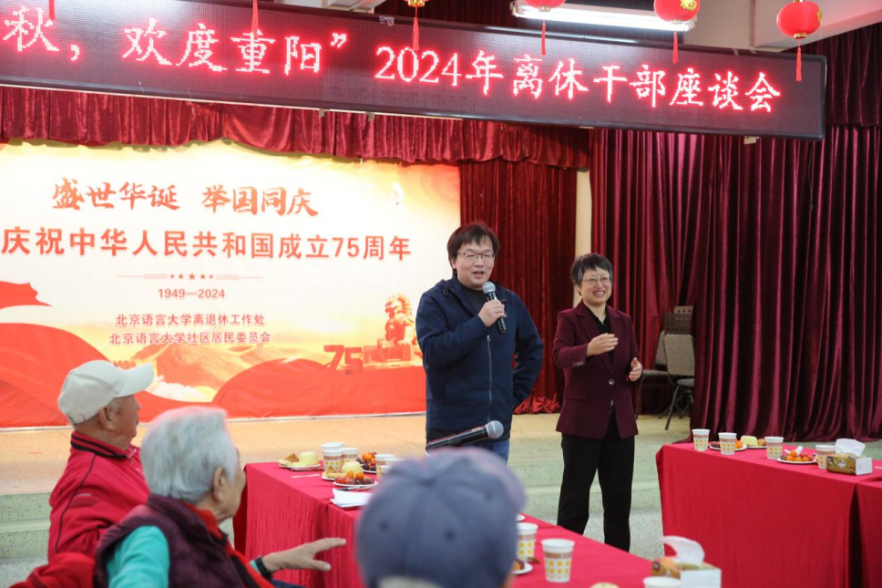 金秋十月,丹桂飘香。在这个温馨美好的季节里,10月11日上午,北京语言大学于离退休工作处多功能厅隆重举办2024年离休干部座谈会。学校党委书记倪海东,党委副书记魏晖,党委常委、统战部部长吕静,学校办公室主任李志坚,党委宣传部常务副部长黄展,组织部副部长于伟,人事处副处长李睿,校团委书记张晴,后勤服务集团党总支书记谢刚,校医院院长王彤等领导出席此次会议。会议由离退休工作处党委书记崔克娟主持,现场气氛热烈温馨。
