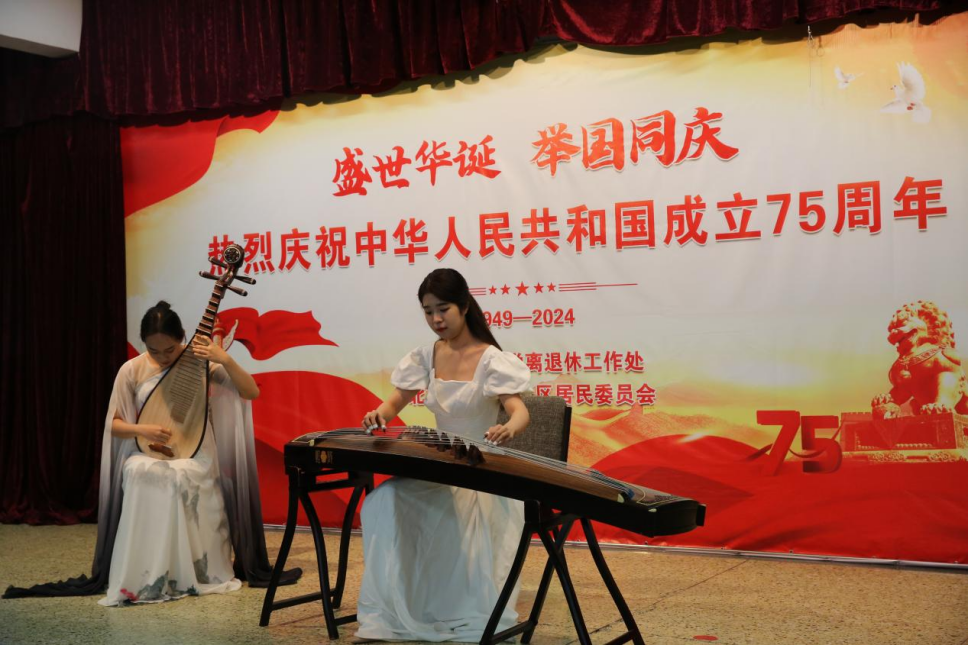 为向离休干部们表达敬意和感谢,艺术学院的学生们献上了精彩的节目。艺术学院学生黄淇韵、孟令一带来的琵琶古筝二重奏《春江花月夜》,曲调优美、旋律悠扬,将大家带入了一幅宁静美好的江南画卷;由艺术学院学生姜馨雅、郑乔忆、吕尚南、王艺霖、许子宇、罗睿哲等人带来的歌曲《老师,我总是想起你》,则表达了对老师们的敬爱与感恩之情,歌声深情动人,打动了在场的每一个人。