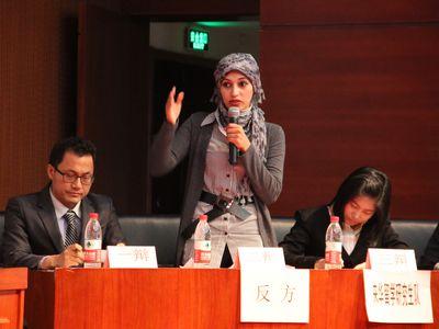 紧接着进行的是最激动人心的冠军争夺赛。研究生二队和国商一队将争夺冠军席位,辩题为:“知识产权制度国际化对发展中国家的利弊”。在立论环节,国商一队正方一辩通过名词解释的方式,从国内国外两个方面指出其带来的自身进步,推出引进技术的利处。反方研究生二队则认为弊大于利,并从经济的冲击、制度的倾向性 、人权的损害三个方面阐述了观点。盘问环节,反方精彩的发言和缜密的逻辑赢得了观众的掌声,而正方的敏捷快速的反应让人折服。随后的攻辩环节中,正方强调知识产权的保护,反方则针锋相对,表示这客观上对知识产权丰富的发达国家产生了倾斜。小结过后,是精彩的自由辩论阶段,针对发达国家和发展中国家的差异性,双方深入提出了模仿和创新的发展之路,各方选手才思敏捷,表达清晰,仪态得体。