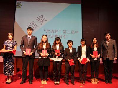 12月6日晚,由社团理事会主办、辩论协会协办的第三届“思语杯”中文辩论赛决赛在逸夫报告厅圆满落幕。大赛邀请到中国经济网评论部常务副主任、曾任全国辩论会节目组策划的李焱老师;国际大学群英辩论会顾问张佳鹏老师;北京交通大学05级最佳辩手李磊老师担任评委。前来观赛的还有校领导及来自北京师范大学、北京科技大学、中国矿业大学、中国地质大学等高校的嘉宾。