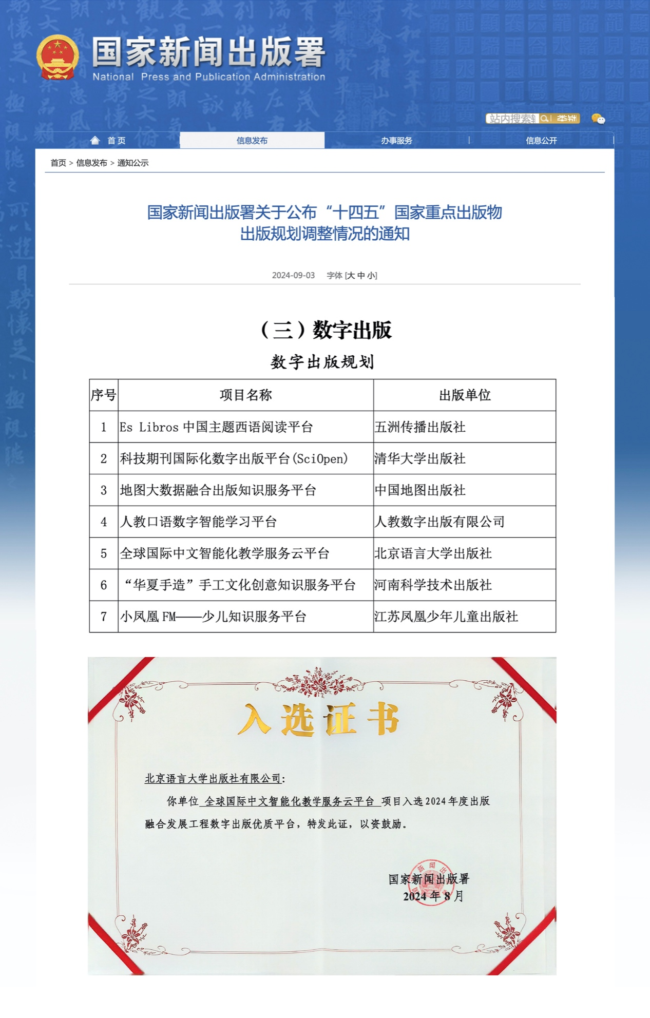 在重点数字出版项目规划中,全国仅有7个平台脱颖而出,“全球国际中文智能化教学服务云平台”荣膺其中,这是对出版社在数字化转型工作上的一次重要认可。该平台是汇集了出版社教材出版、教育技术、教学研究方面的专业力量,为国际中文教育的师生量身打造,助力国际中文教育数字化迈向了智能化、立体化、数据化的新纪元。该平台获评国家新闻出版署“2024年度出版融合发展工程数字出版优质平台”。