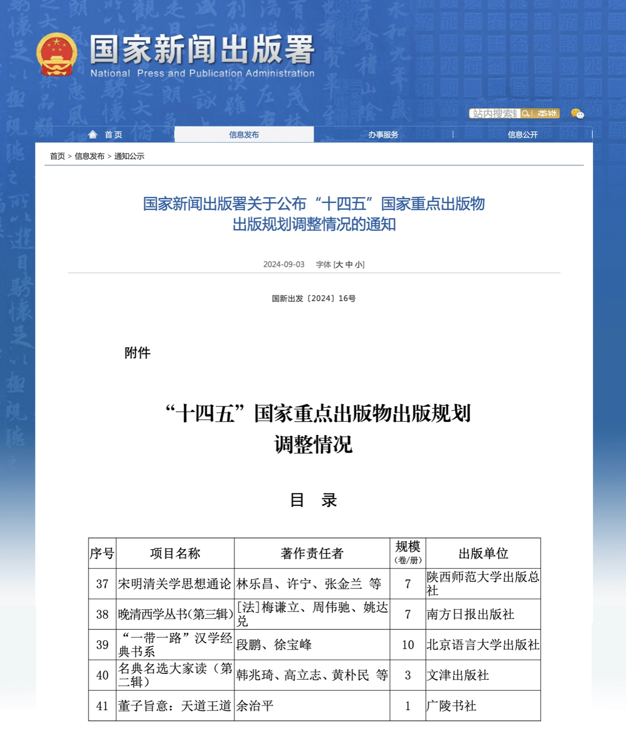 据国家新闻出版署发布的《关于公布“十四五”国家重点出版物出版规划调整情况的通知》,我校出版社申报的“‘一带一路’汉学经典书系”“全球国际中文智能化教学服务云平台”入选“十四五”国家重点出版物出版规划增补项目。