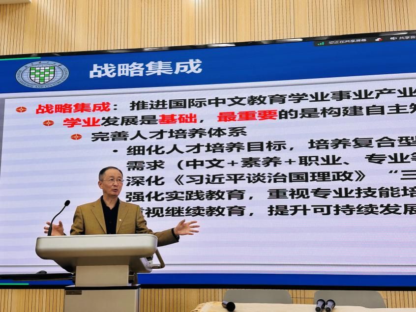 魏晖老师进一步强调,实施工程化的关键在于集成创新,包括战略集成、知识集成和组织集成。在战略集成方面,魏老师创新性地提出了交往文化理论、“三化”联动模式(工程化、市场化、在地化)和“中文及文明互鉴学”构建蓝图。在师生交流环节,魏晖老师结合自身从工程管理学到语言学的“转型”经历,生动阐述了知识与素养之间的关系,指出国际中文教育当下需要在学科发展的基础上,完善人才培养体系,应注重对学生的知识能力和综合素养的同步培养。