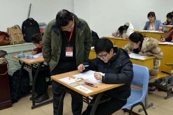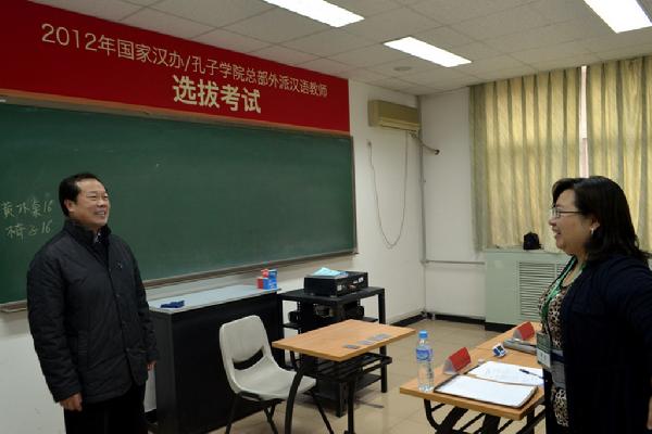 12月1日至2日,2013年国家汉办赴孔子学院(课堂)及赴韩中小学志愿者选拔考试在我校举行。国家汉办和我校领导高度重视此次考试。总督考、国家汉办党委书记马箭飞,北语考点总协调人、我校党委副书记赵旻,国家汉办志愿者中心主任郭骄阳和师资处副处长赵燕清分别来到考场,对本次考试进行了现场指导。