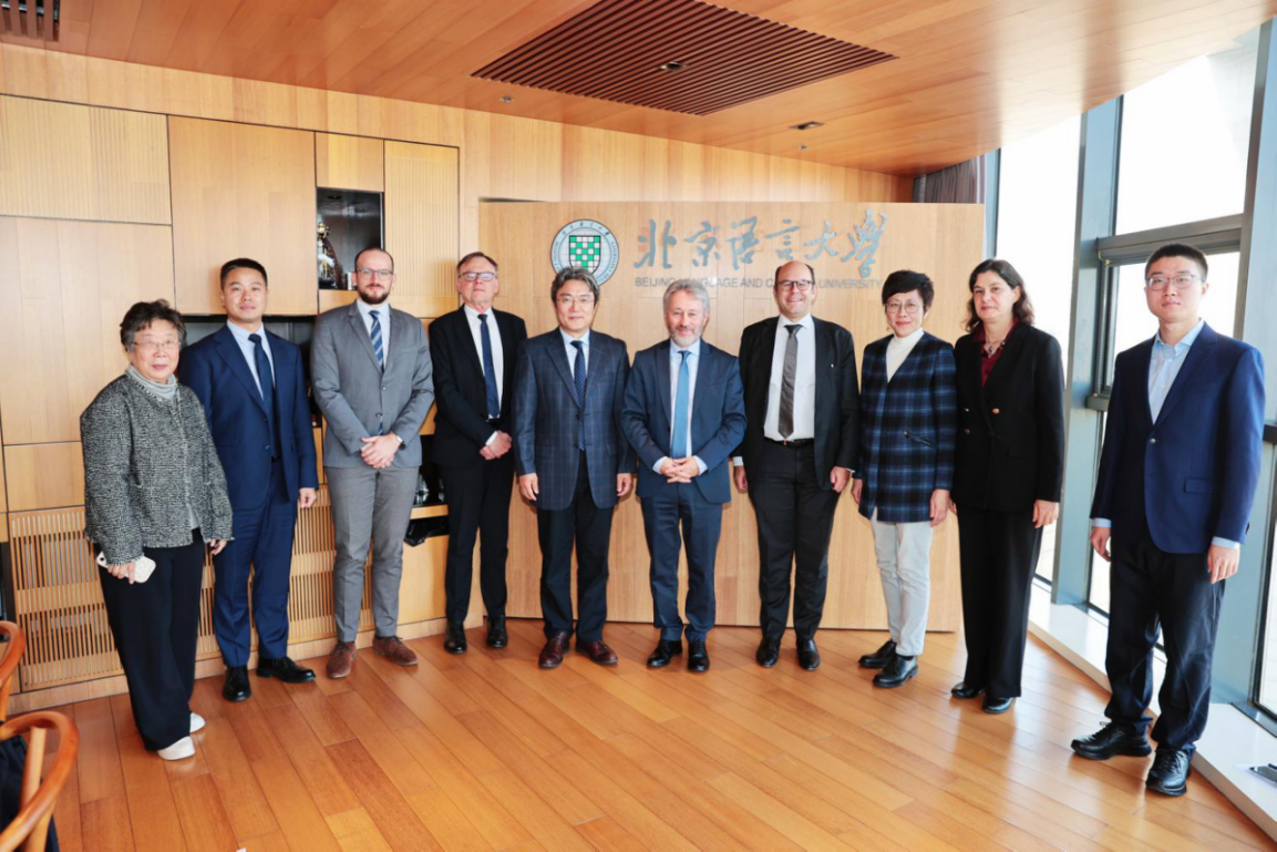 法语联盟基金会亚太地区负责人让·弗朗索瓦·汉斯、法国驻华使馆法盟在华事务协调专员路易·巴雷蒂、北京法语联盟法方校长白恩兰、我校国际合作与交流处副处长(主持工作)吴毅、北京法语联盟中方校长包月红、外国语学部法语系主任王秀丽等参加会见。
