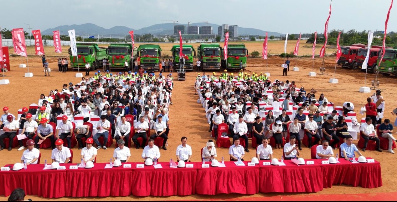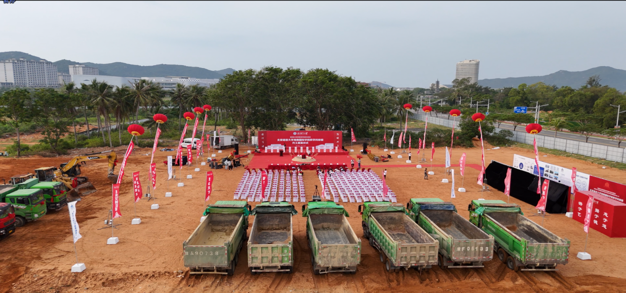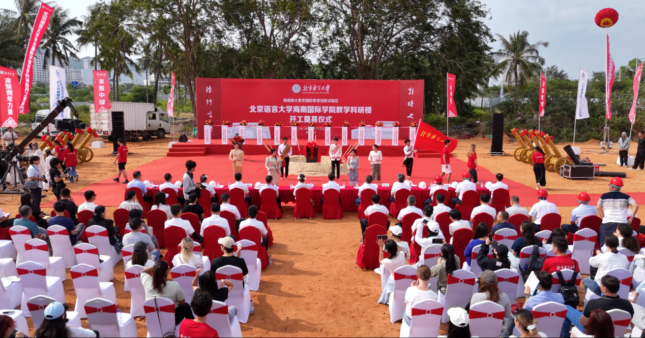 10月23日,海南陵水黎安国际教育创新试验区内清风徐徐,海景怡人。北京语言大学海南国际学院教学科研楼工地热闹非凡,施工车辆排列整齐,空中彩旗飘扬,在微风中舞动出绚丽的色彩,处处洋溢着欢乐热闹的气氛。场内300余名海南国际学院国际学生和老师脸上洋溢着期待与兴奋,共同期待教学科研楼开工奠基仪式的开始。