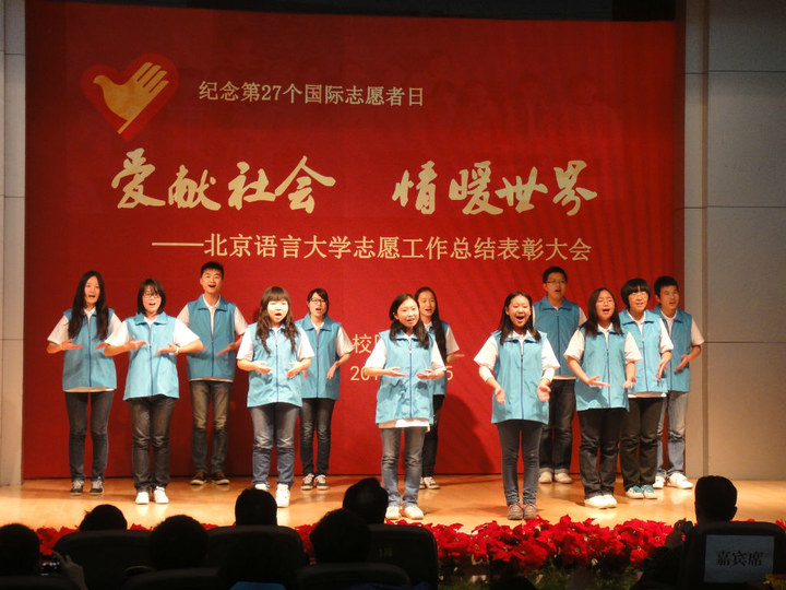 12月5日晚,为纪念第27个国际志愿者日,由校团委主办的“爱献社会,情暖世界”北京语言大学2011-2012学年志愿工作总结表彰大会在主楼209隆重召开。校党委副书记赵旻教授出席大会并讲话。出席大会的还有北京各其他高校代表和各对接项目单位代表等。