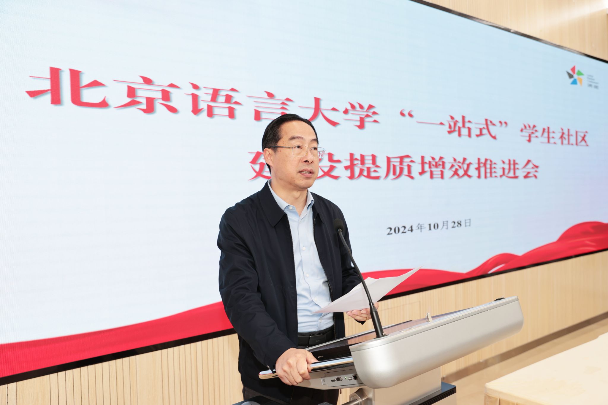 对于学校“一站式”学生社区建设的下一步工作,倪书记提出了三点要求:一是提高政治站位,深刻把握内涵。各部门、各单位要充分认识到高校建设“一站式”学生社区符合教育改革发展方向、实践证明行之有效,要强化育人责任,在工作中深刻理解“一站式”学生社区综合管理模式建设的依据、内涵、意义,要着眼学校发展大局,凝聚合力推进这项工作。二是明确建设目标,主动推进落实。各培养单位作为学生社区的一线单位,要夯实基层责任,各单位党组织书记、院长、学生工作负责人要认真学习、研读《高校“一站式”学生社区综合管理模式建设提质增效指南》,深刻理解指标内涵,确保路径清晰,进一步明确建设目标方向。研究生培养单位要积极探索适合研究生特点的社区建设模式,将“一站式”学生社区范围扩展到研究生群体。三是强化特色发展,注重创新提升。学校目前逐步形成了具有北语特色的“五彩五型”学生社区建设模式,各培养单位要加强相互之间的交流学习,促进学生社区各方面育人工作融合式发展,在建设什么样的学生社区上深化共识,在“因地制宜”中不断探索实践,凝练典型做法,开发更多的符合学校发展、满足学生需求的育人品牌,形成可复制、可推广的“一站式”学生社区建设经验,加快构建“先锋型、发展型、创新型、服务型、平安型”学生社区,切实推进学校“一站式”学生社区建设工作的提质增效。