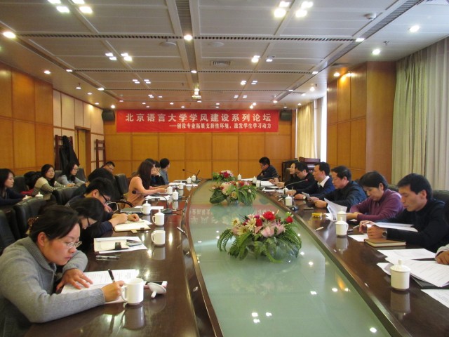 12月4日下午,北京语言大学学风建设系列论坛之“创设专业拓展支持性环境,激发学生学习动力”论坛在会议中心第一会议室隆重举行。校党委赵旻副书记出席论坛,宣传部、教务处、留学生处、学生处、团委等职能部门负责人,各中国学生学院主管学生工作领导以及全体辅导员参加论坛。论坛由学生处李志军处长主持。
