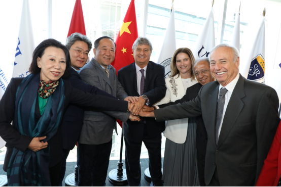 在论坛开幕式上,段鹏校长与秘鲁前副总统、圣伊格纳西奥德洛约拉大学创始人劳尔·迭斯·坎塞科·特里共同签署《中华人民共和国北京语言大学与秘鲁共和国圣伊格纳西奥德洛约拉大学合作建设秘鲁中国研究院框架协议》,与秘鲁国会主席爱德华多·萨尔瓜纳、圣伊格纳西奥德洛约拉大学执行董事卢西亚娜·德拉富恩特一同为秘鲁中国研究院揭牌,得到11个经济体的政要、官员、使节、大学校长,以及各领域专家与学者共同见证。仪式结束后,段鹏校长在圣伊格纳西奥德洛约拉大学专门为秘鲁中国研究院配备的办公楼前发表讲话。他表示秘鲁中国研究院将成为中秘合作交流、文明互鉴的桥梁,北京语言大学将与秘方携手,汇聚多方资源,将研究院建设成为具有全球影响力的智库和教育平台。