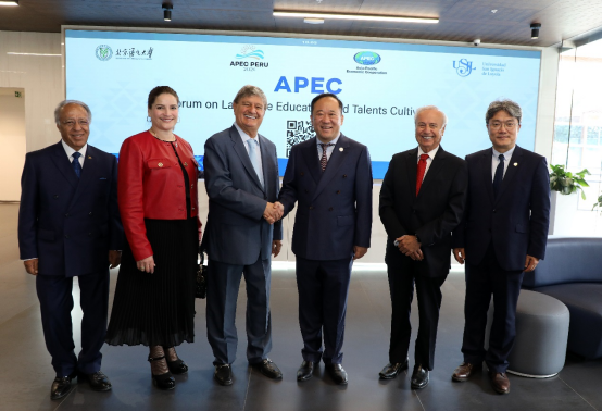 为配合好国家发展需要,服务于人类命运共同体构建。短短三天时间里,段鹏校长带队的北京语言大学工作小组一行,签署了重要合作框架协议,成立了秘鲁中国研究院,接受当地媒体采访,并成功举办了第三届亚太经合组织教育论坛,主动发展、积极搭桥,在国际舞台上展现了中国大学开放、合作、务实、创新的形象,可谓成果丰硕。北语作为以中文教育为办学特色和优势的国际型大学,以中文为桥梁,承载起中外全方位交流中对中文人才培养的需求,是学校天然责任与使命。第三届亚太经合组织教育论坛的成功举办使语言的研究、保护、推广与人才培养有机融合,从语言教育上升到文明互鉴和全球化发展。从教育领域为亚太命运共同体、乃至人类命运共同体的构建贡献了智慧和力量。秘鲁中国研究院的成立是中国式现代化推动世界现代化进程的具体践行,是中国教育国际化发展的重要成果形式,为中文传播中国探索了一条全新的模式。学校将以此为起点,依托国际中文教育实践与研究基地深入推动双边学术、人才培养与文化交流,为中拉地区提供更多智力支持、连接文化纽带,助力区域合作迈向更高水平,为构建人类命运共同体贡献新力量。