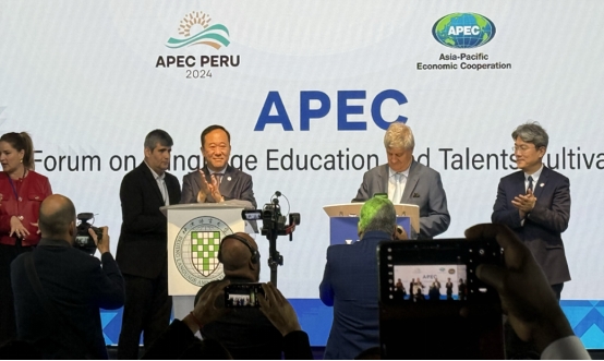 本届论坛上的另一个标志性事件是“秘鲁中国研究院”的成立。当地时间11月14日晚,国家主席习近平同秘鲁总统博鲁阿尔特在利马总统府以视频方式共同出席的钱凯港开港仪式。港口的开通标志着一条联通大洋两端的崭新航路贯通,更预示着中国与秘鲁,以及拉丁美洲国家全方位合作的启动,并将成为促进中秘和中拉共同发展的繁荣之路。而与全方位合作相伴而来的,则是对全方位复合型人才的培养需求。北京语言大学作为以中文人才培养为特色和优势的国际型大学,在当地成立“秘鲁中国研究院”,以中文为桥为深化中秘及中拉合作开辟了新路径,也为APEC框架下多边主义和全球治理的教育创新实践树立了新范式。