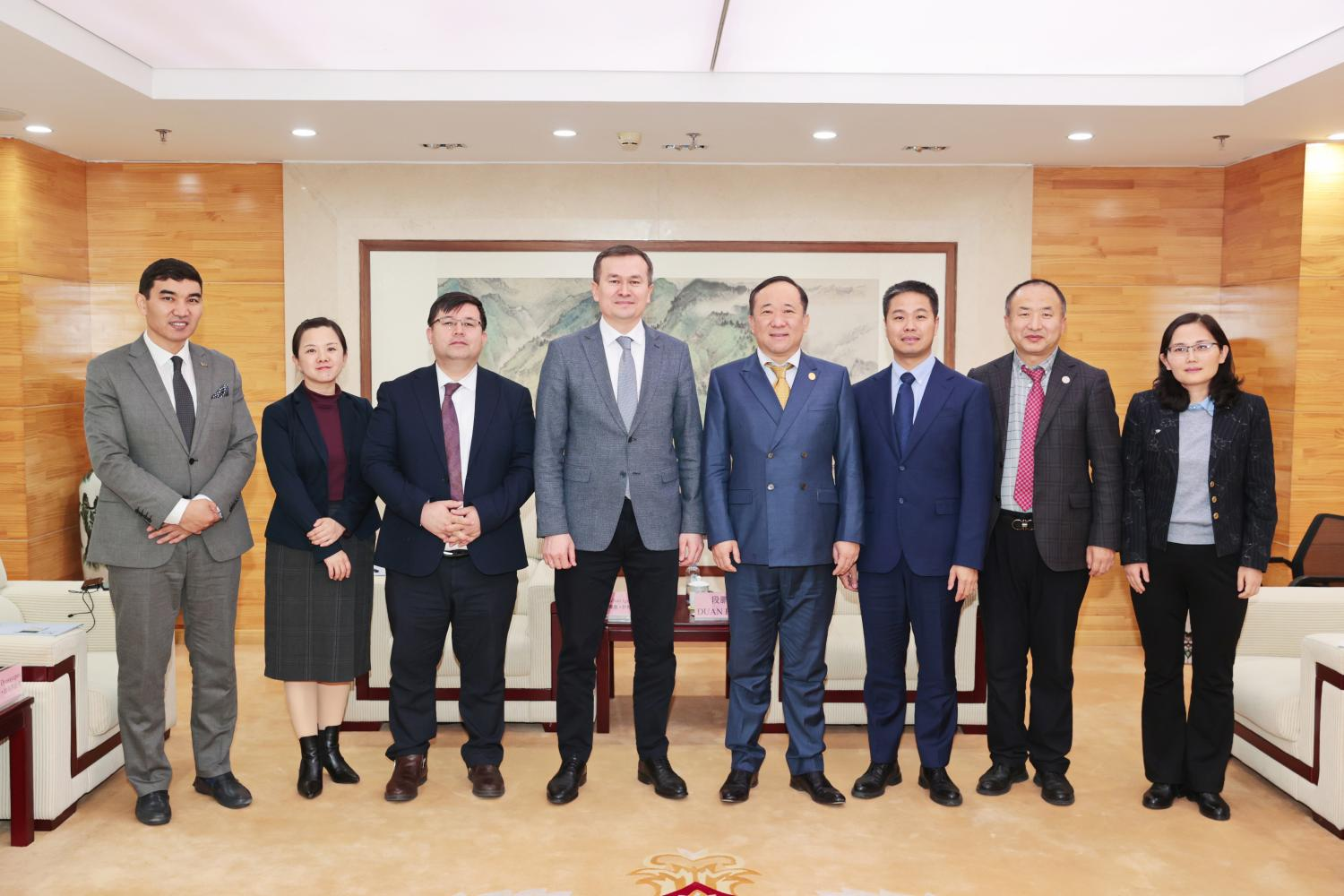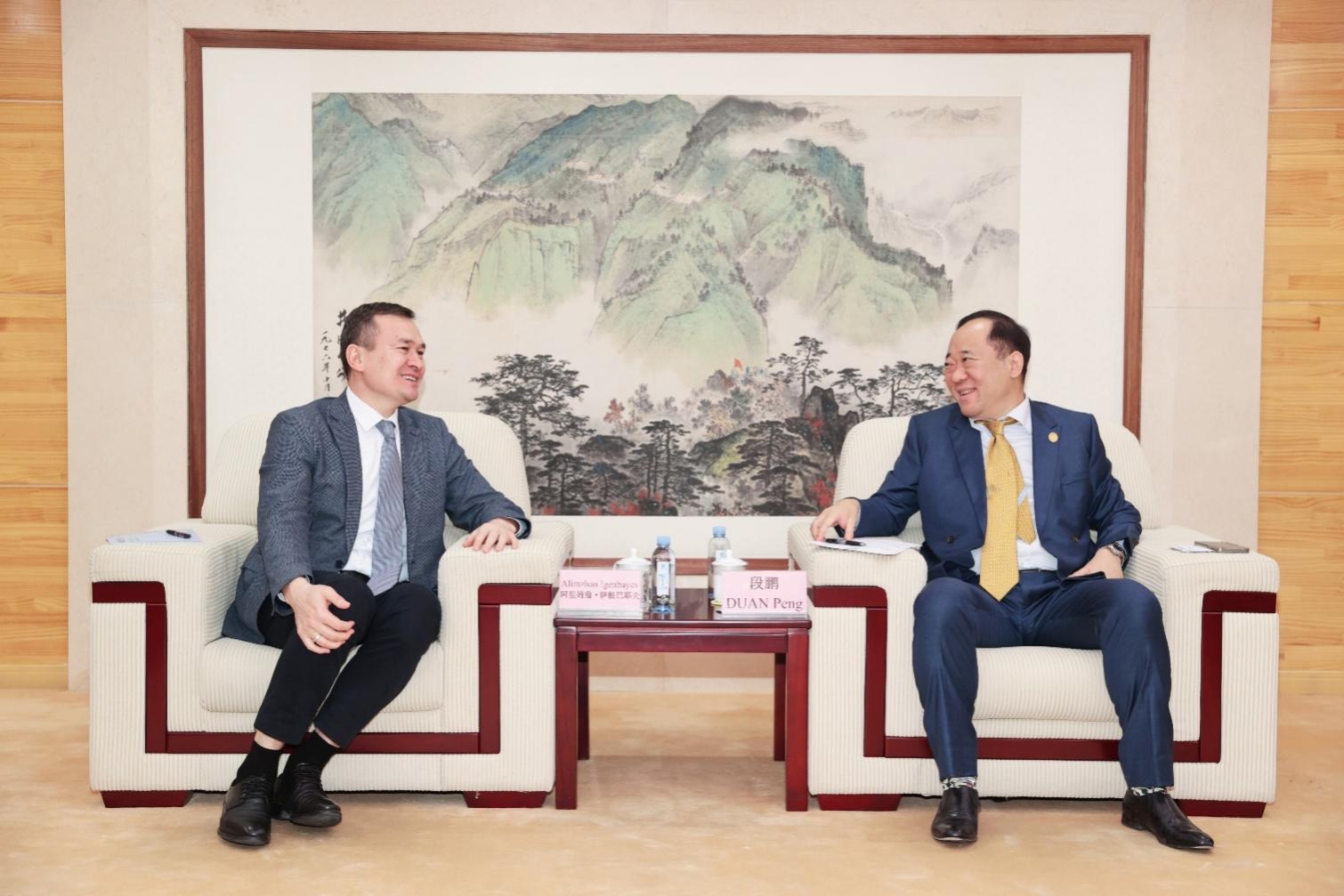 11月26日下午,段鹏校长会见了苏莱曼•德米雷尔大学校长阿里姆詹·伊根巴耶夫教授一行。