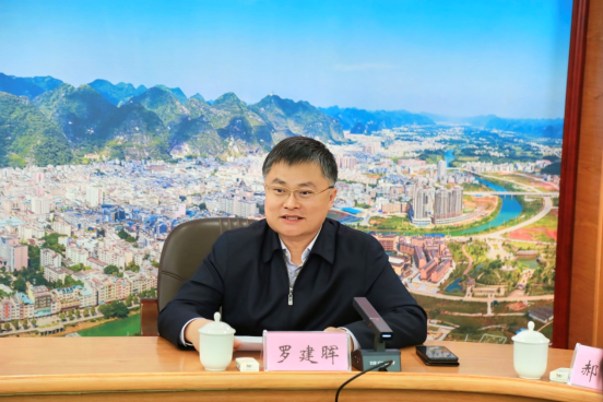 都安县党委书记李建君对北京语言大学一行的到来表示热烈欢迎,对我校长期以来的大力支持以及丰硕成果表示感谢,希望双方继续携手在电子商贸、人才交流、师资培训等领域深入合作。