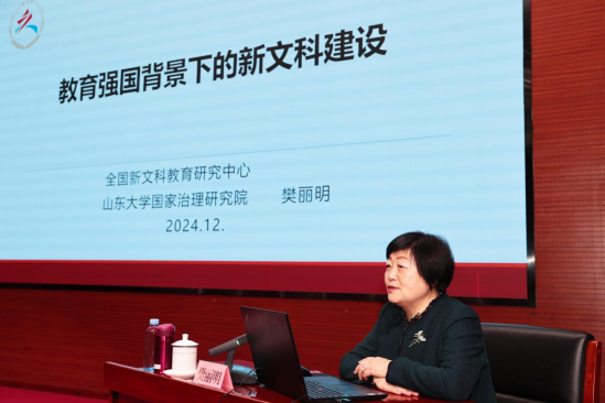 12月4日下午,学校在逸夫报告厅举办新任中层干部启航班(第二期)专题报告第二讲,邀请全国新文科教育研究中心主任、山东大学国家治理研究院院长樊丽明教授作报告,报告的主题是教育强国背景下的新文科建设。报告会由学校党委书记倪海东主持。党委副书记、校长段鹏,党委常委、统战部部长吕静,党委常委、组织部部长张健,校长助理、研究生院院长郭鹏,校长助理、学校办公室主任李志坚等学校领导到会听取报告。启航班(第二期)全体学员、远航班全体学员、项目负责人、教师党支部书记、第四期青年拔尖人才研修班学员及相关专业教师等200余人参加报告会。