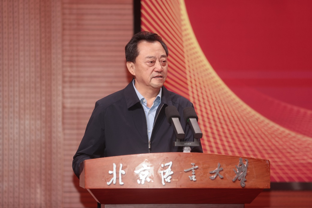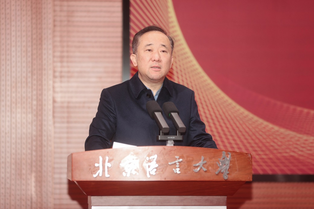 段鹏校长宣读了北京语言大学《关于表彰2024年就业工作先进集体和先进个人的决定》,希望受表彰的单位和个人再接再厉,继续发挥模范带头作用,全力促进我校毕业生更加充分更高质量就业。校党委书记倪海东、副校长黄益方、学生处处长武玉洲、就业创业指导中心主任刘喆分别为市校两级就业先进获奖单位和个人颁发荣誉证书。