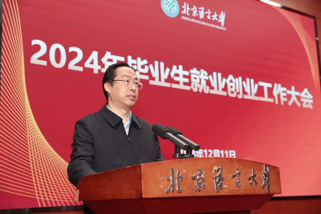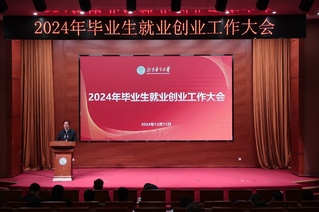 12月11日上午,北京语言大学2024年毕业生就业创业工作大会在逸夫报告厅顺利举行。出席本次大会的有校党委书记倪海东,校长段鹏,校党委常委、副校长黄益方,以及各中国学生培养单位党政主要负责人、分管学生工作领导,学生处、研究生院、校团委负责人,就业创业指导中心全体工作人员,全体辅导员,毕业班班主任。大会由黄益方副校长主持。