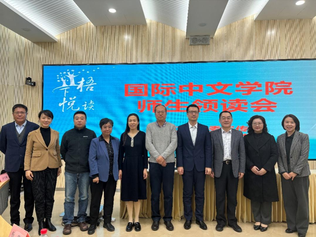 习近平总书记曾指出,读书可以让人保持思想活力,得到智慧启发,滋养浩然之气。为了营造爱读书、读好书、善读书的浓厚氛围,12月9日下午,由校党委宣传部主办、国际中文学院党委承办的“梧下悦读”2024北京语言大学师生领读会于教二楼101教室举行。党委常委、黄益方副校长出席活动;党委宣传部副部长卜晨光、国际教育管理处副处长黄潇潇参加领读会。领读会邀请到了十位国际中文学院名师、中外学生代表——党委书记梁彦民副教授、赵雷教授、韩玉国教授、金海月副教授、张书杰副教授、杨茜副教授、孙兴锋老师、李依婷、张威雨(俄罗斯)、寸守端(缅甸)作为领读嘉宾,活动由国际中文学院高美娟主持。